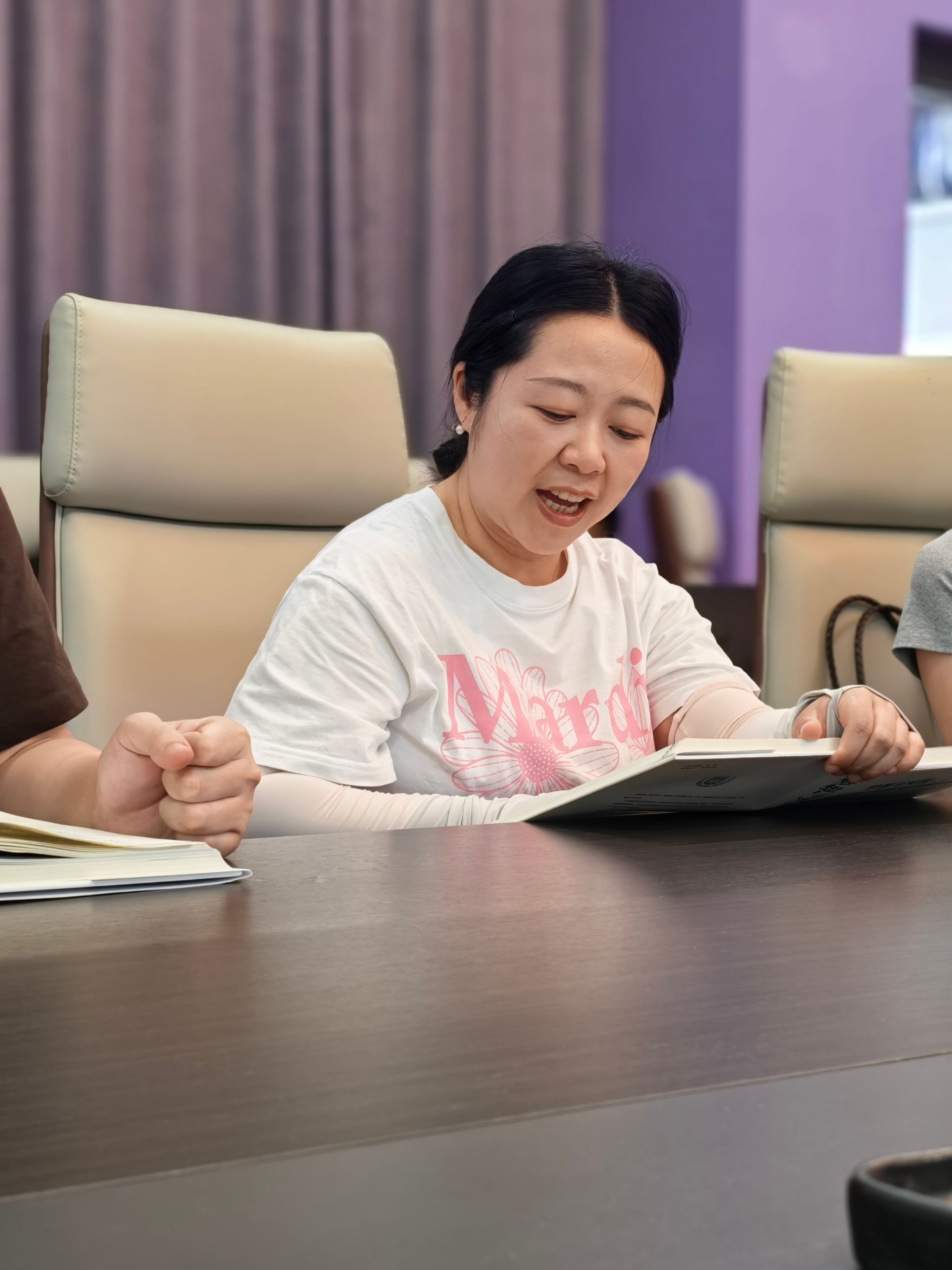 在交流环节,教师们结合自身教学经验分享了读书感悟。张鑫淼老师从个人生活角度出发,探讨了教育理念对个人成长的影响;程略晋老师则结合参与的学院项目,阐述了如何将书中的理念应用于实际教学和项目管理中。大家一致认为,书中提出的“四位一体双院制”育人模式、完满教育理念以及信息产业商学院的建设思路,为教师的教学改革和专业发展提供了有力指导。