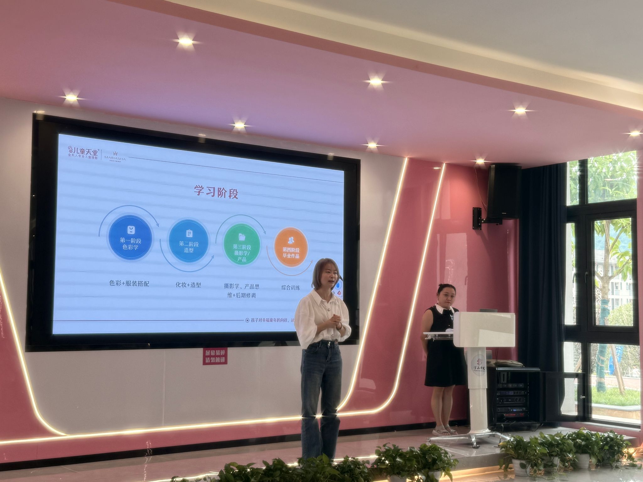 该定制班与重庆儿童天堂摄影有限公司合作设立,重点围绕影像产品策划、视觉设计与商业运营展开教学,核心则着眼于影视产业链中至关重要的服化道(服装、化妆、道具)设计与影像产品化环节。依托企业实景影棚与门店资源,采用轮岗实训与案例教学相结合的方式,培养学生从创意策划到市场落地的全链路能力,强化其对视觉表达与文化消费的综合把握。