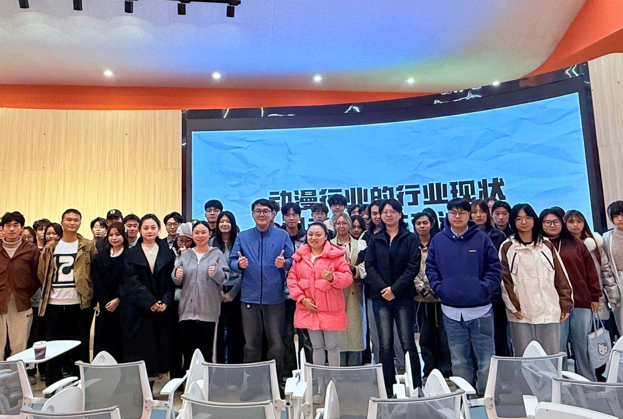 讲座最后,综合艺术教研室袁梦茹主任作总结讲话。袁主任指出本次讲座内容系统、见解深刻,不仅贴近行业现实,更为动画专业建设和人才培养提供了重要启示;并强调,面对行业的快速变化,学院将进一步推进产教融合,加强与业界的互动交流,引导学生夯实专业基础、树立前沿视野、提升综合能力,持续培养符合时代需求的高素质应用型动漫人才。