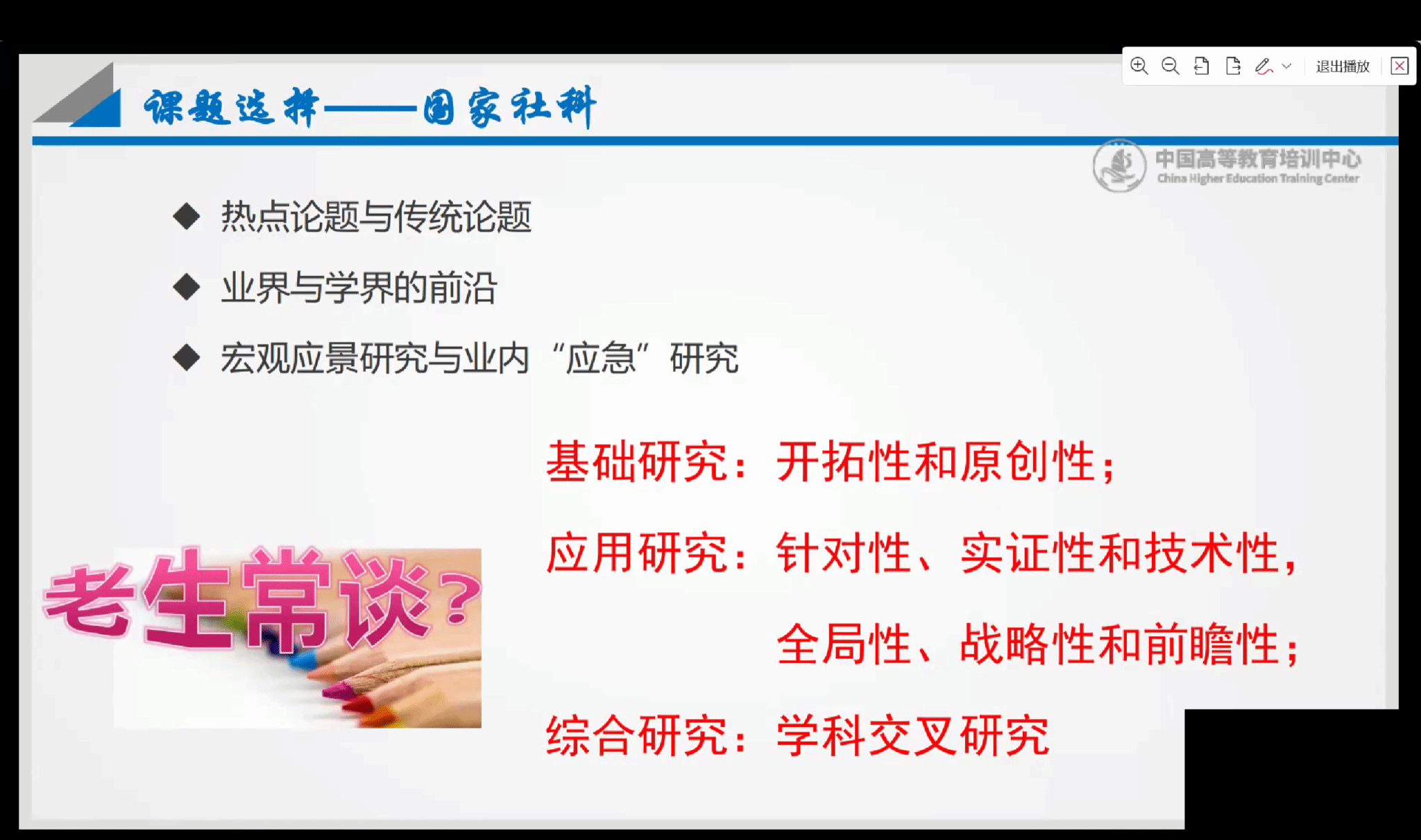 “全国教育科学规划项目申报策略与经验分享”部分,则聚焦教育类课题的政策背景与实践路径,介绍了项目设计如何对接教育现实问题,实现理论研究与实践创新的有机结合。