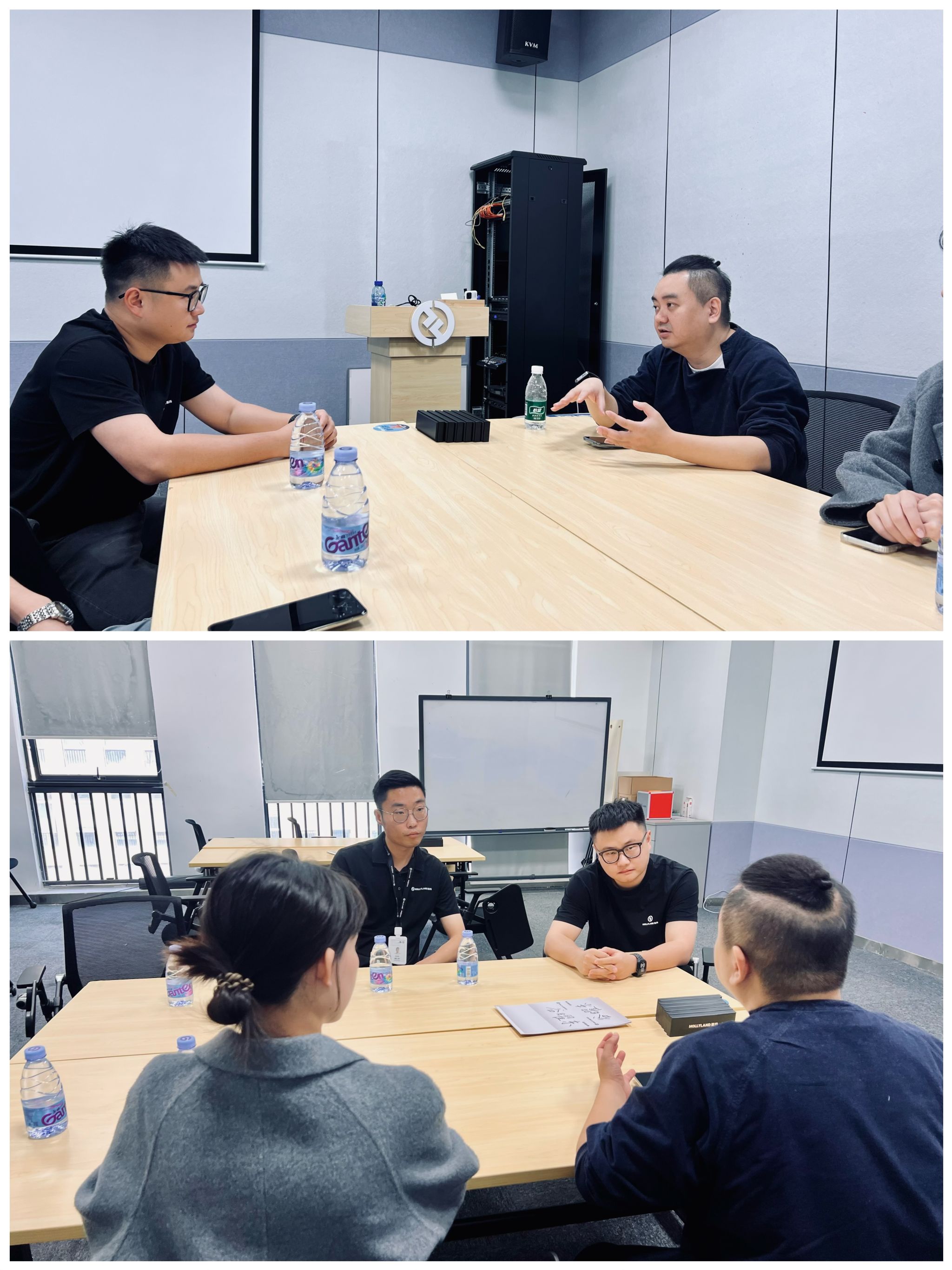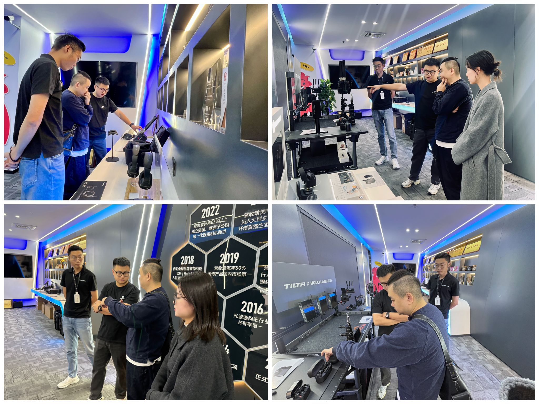 在HOLLYLAND猛玛市场线下负责人高兴、HOLLYLAND猛玛西南区域负责人段仁杰的陪同下,吴杨爽主任一行参观了产品展示中心与研发测试区,详细了解了从便携式录音设备、图像传感器等全系列产品的创新设计与技术细节。教师们亲手操作体验了最新设备,并与企业技术专家就产品性能、应用痛点及未来趋势进行了现场交流。