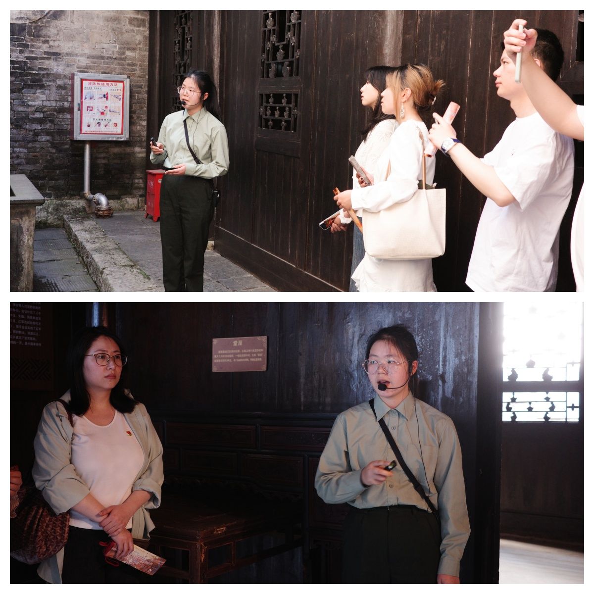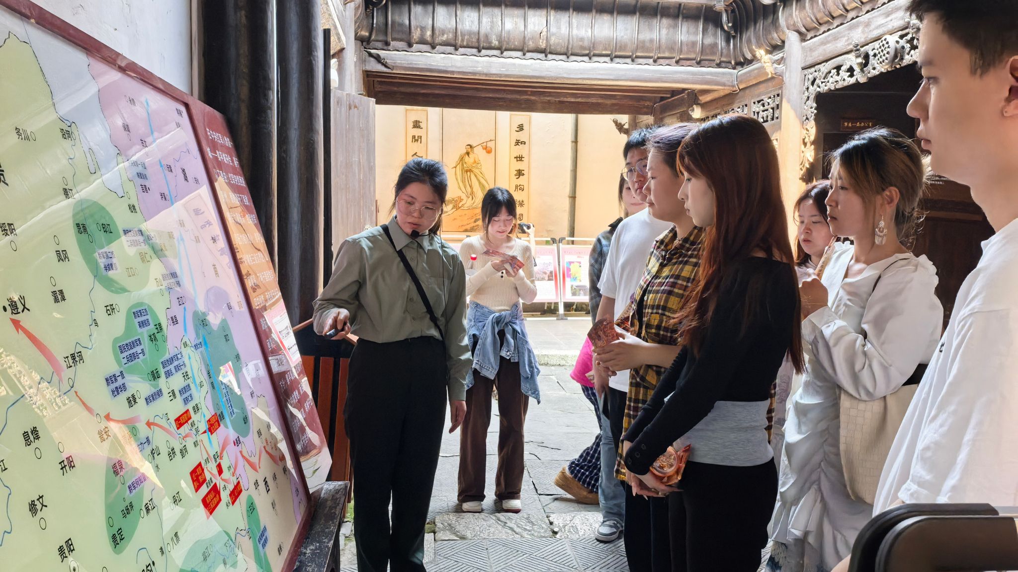 在参观过程中,同志们认真聆听了讲解员对黎平会议历史背景、会议过程及重要意义的详细介绍。一幅幅珍贵的历史图片、一件件陈列的革命文物,仿佛将大家带回到那个风云激荡的年代,让师生们深刻感受到革命先辈们为了国家独立、民族解放所展现出的坚定信念和无畏牺牲精神。教师党支部的党员同志们不时驻足,相互交流对历史事件的理解和感悟,思考如何将这段历史更好地融入到今后的教学和研究中。学生们则充满好奇,仔细观察每一处细节,并不时向讲解员提问,展现出对红色文化浓厚的学习兴趣。