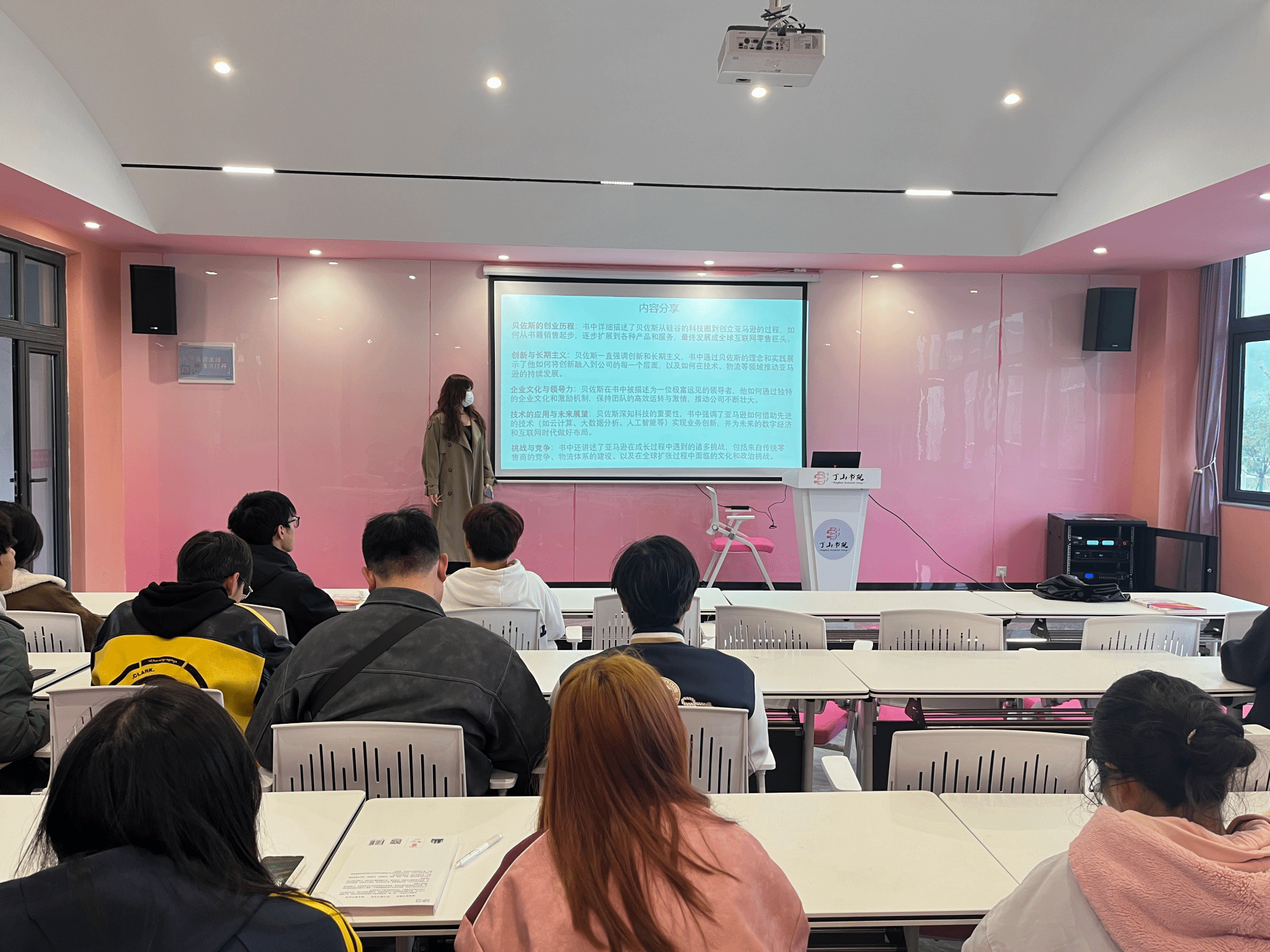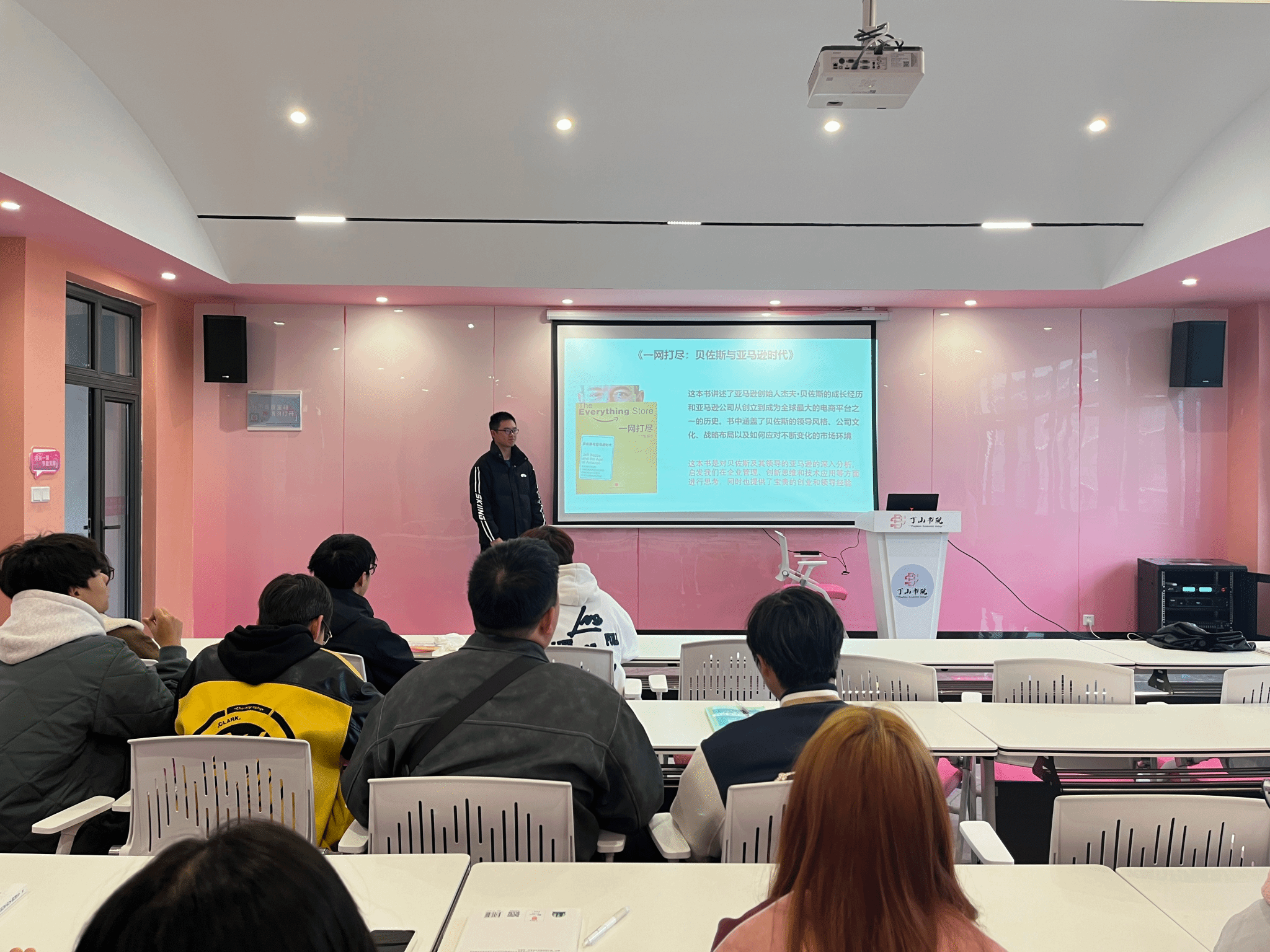为进一步激发学生的创新思维、职业发展意识以及个人成长的深刻思考,结合学校“信息产业商学院”的创新精神和实践能力培养的教育理念,2025年3月14日上午10:00,在丁山书院·白羊座演讲培训室成功举办了以《一网打尽:贝佐斯与亚马逊时代》为主题的大咖阅读分享会。本次活动由信息安全学院的陈艺老师主持,2024级戏剧影视学院文学专升本1班和动画1班的部分同学积极参与。