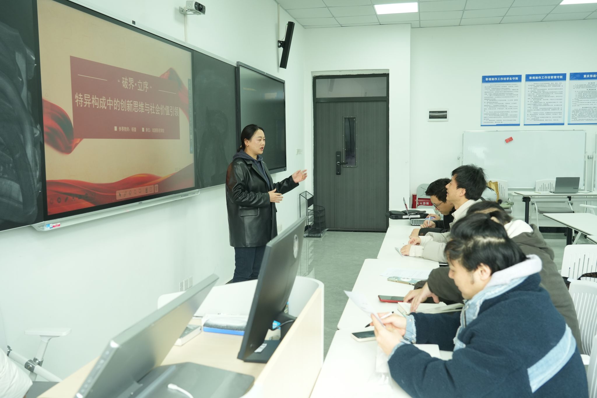 杨曾老师在构成基础课中以“破界·立序”特异构成中的创新思维与社会价值引领为主题,将创新思维与社会价值融入教学。他通过设计案例分析,引导学生思考如何在设计中体现对社会问题的关注,如环保、公益等,鼓励学生打破传统思维,用设计回应社会需求,培养学生的创新意识和社会责任感。