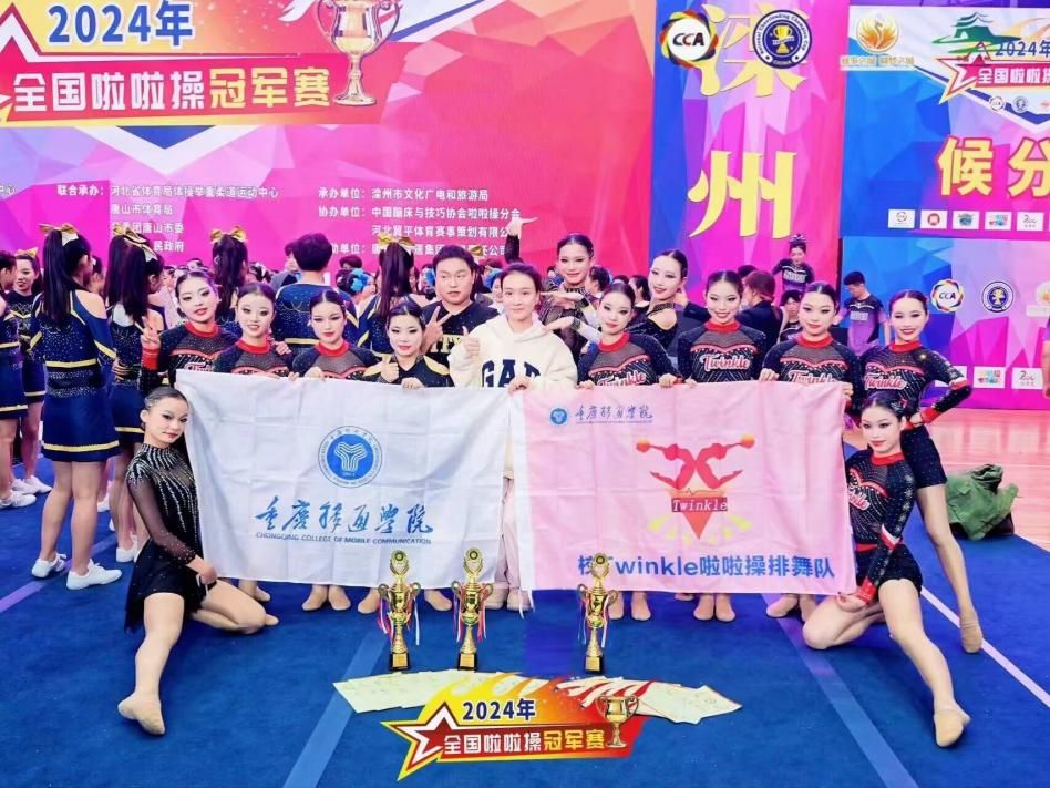 4月26日—29日,2024年中国长三角啦啦操挑战赛在湖州体育馆举行,我校啦啦操排舞队在王尚傲、蒋佳源教练的带领下参赛,与来自全国14个省市的高水平特招啦啦操队伍同台竞技,最终拿下街舞、爵士全国双冠军!