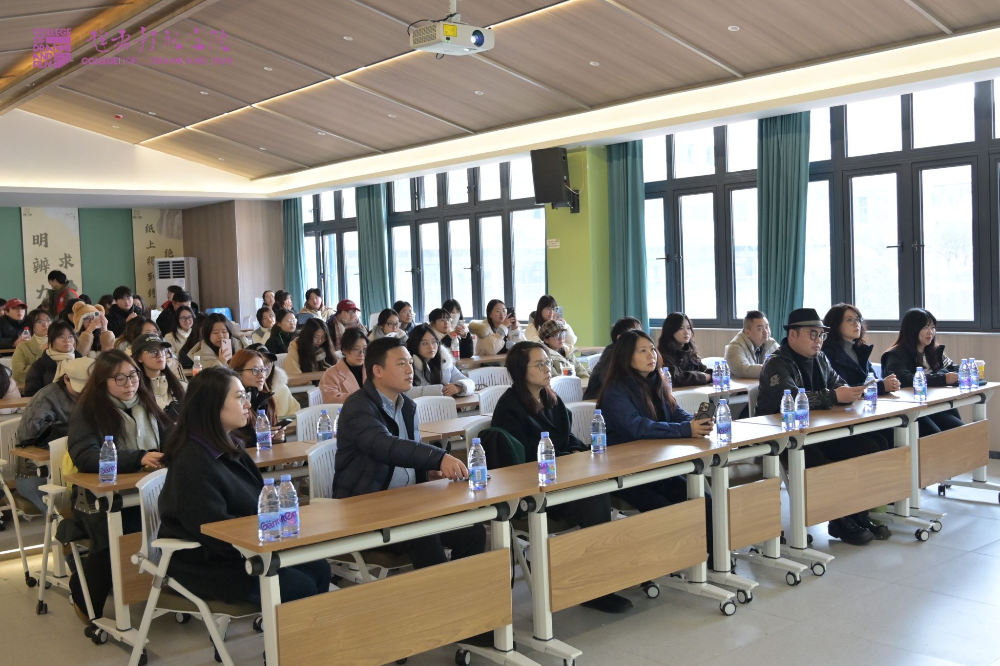 在南江书院审问·启迪思维学堂,双方师生汇聚一堂,拉开此次交流活动的序幕。杨帆老师首先代表戏剧影视学院,向重庆师范大学的师生们表达了诚挚的欢迎之情,并详细介绍了我校的发展历程、办学理念以及“四位一体双院制+特色课程”的鲜明办学特色。随后,他围绕学院以工科为基、艺术为魂、商科为翼的特色模式,深入阐述了学院在专业建设、学科建设及人才培养模式上的探索与实践。戏剧影视学院始终秉持应用型导向,积极响应学校“立志成为双一流之外的首选大学”的品牌价值追求,致力于构建一体化、全链式的人才培养流程,精心培育具备强大实践能力的戏剧影视专业人才。