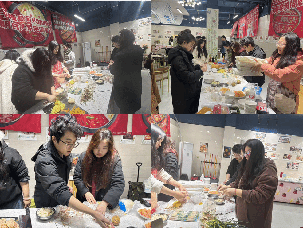 活动伊始,同学们轻装上阵,从择菜、洗菜到切菜、调制沾碟、安排餐桌和餐位,每一步都亲力亲为,将劳动的乐趣与团队协作的精神展现得淋漓尽致。尽管在制作火锅的过程中遇到了不少挑战,但大家集思广益,共同克服,最终呈现了一场色香味俱全的火锅盛宴。