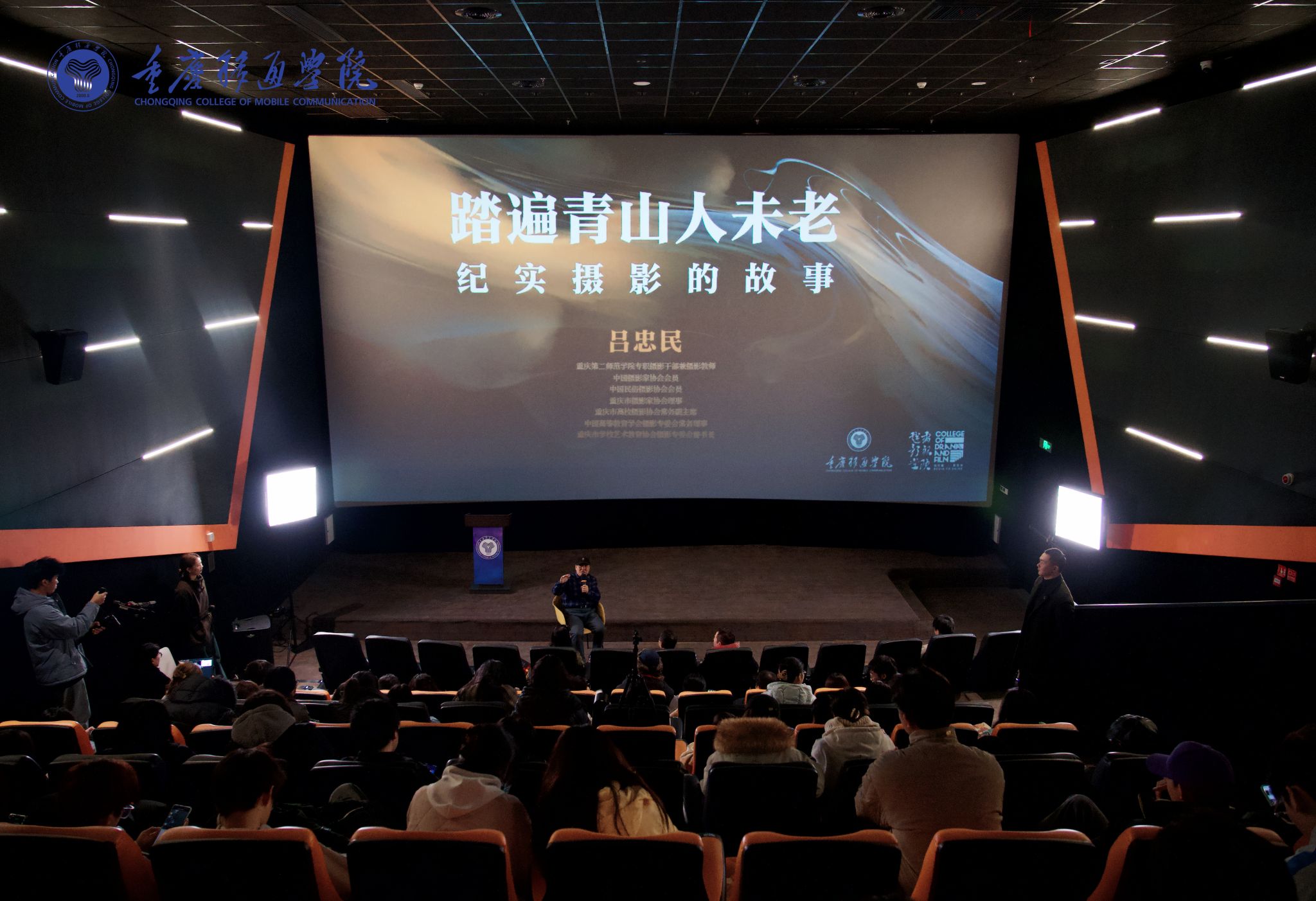 随后,吕忠民副会长专题讲座精彩开讲。吕忠民副会长自1979年起便踏上摄影逐梦之旅,足迹遍布华夏大地30余个省、市、自治区。他以自身经历为生动蓝本,分享了自己从摄影艺术的启蒙之初,到对纪实摄影领域的笃定坚守与执着探寻。王永周副校长在会后表示:“吕副会长的经历不止是纵横南北的游历踪迹,更有以血肉温度记录的重庆直辖华章,还有领养山区儿童的温情善举。可以用‘大爱人生,不虚此行,踏遍青山人未老;浓情岁月,无悔此心,赏尽岁月志尤存’来总结。他的专业技能毋庸置疑,他的家国情怀和道德品质更值得我们慢慢品悟和学习。”在场师生透过一张张影像窗口,接受了自然美、社会美、人伦美的洗礼。
