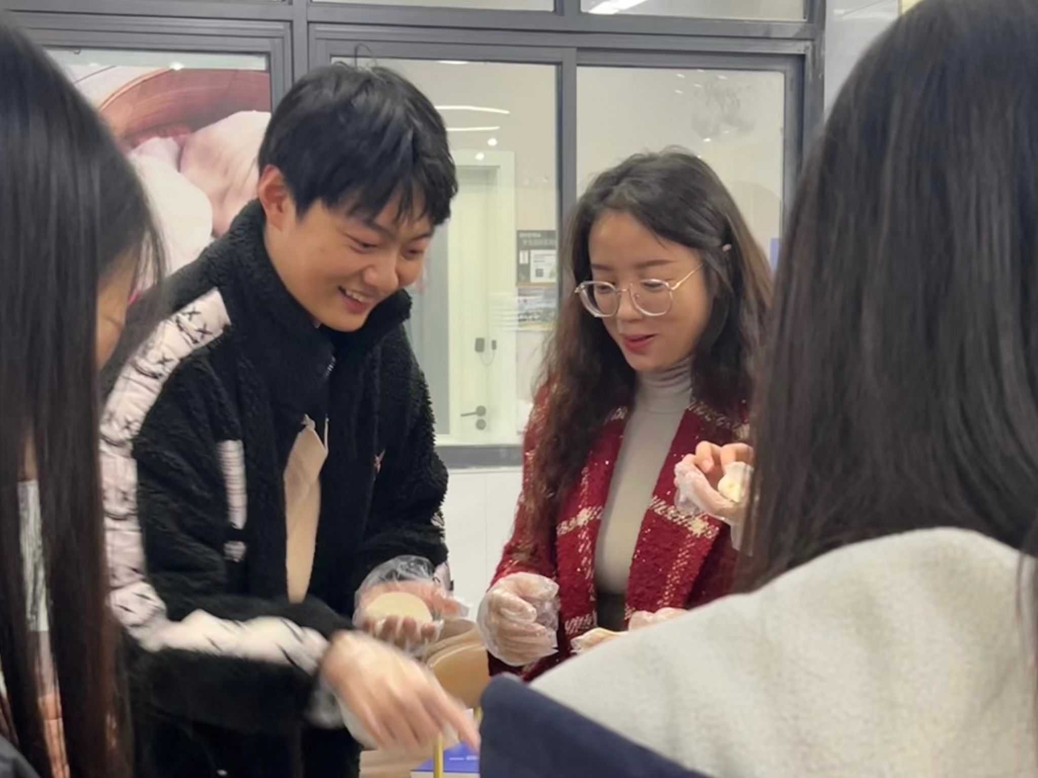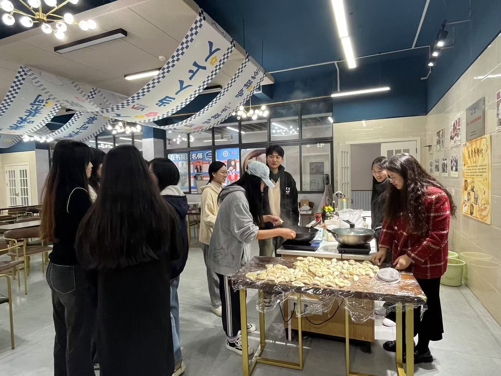 活动在轻松愉快的氛围中拉开序幕,张焰琳老师与林西康老师率先垂范,他们亲切的话语、娴熟的手法瞬间点燃了同学们的参与热情。师生们纷纷卷起衣袖,变身“饺子匠人”,在一片欢声笑语中开始了包饺子的技艺学习。饺子,这一承载着中华民族团圆与和谐美好寓意的美食,此刻成为了连接师生情感的桥梁。大家一边动手实践,一边交流着各自家乡包饺子的习俗与趣事,空气中弥漫着的不仅是饺子的香气,更有师生间深厚的情谊和温暖的记忆。