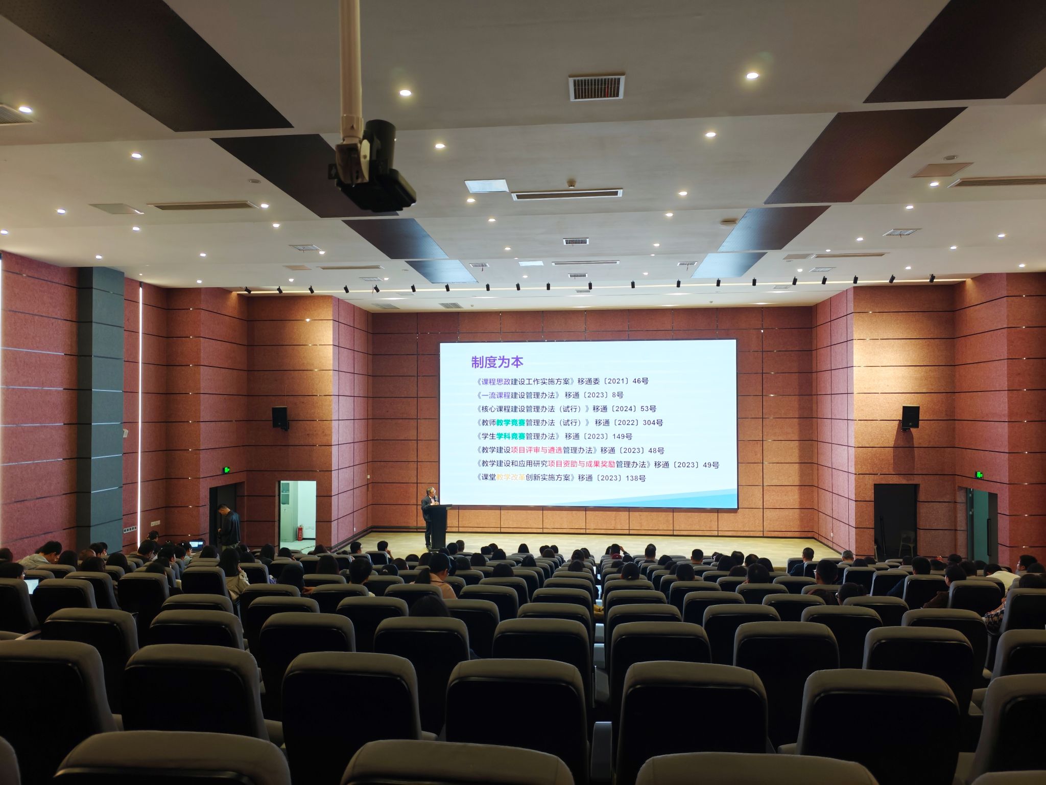 高飞教授深入剖析了学校教师管理的制度体系,并从教学竞赛管理、项目资助与成果奖励等细节切入,罗列了学科专业建设、教研室及教学团队建设管理办法等多个版块的制度管理规范。他强调,制度是教育的基石,更是创新的土壤,只有不断完善和优化制度,才能为教师的专业成长提供广阔舞台,激发教师的内在潜能,推动教育质量的持续提升。同时,每一项制度都凝聚着学校对教育规律的深刻把握和对教师成长的深切关怀,教师应当从中思考自我的发展定位与发展方向。