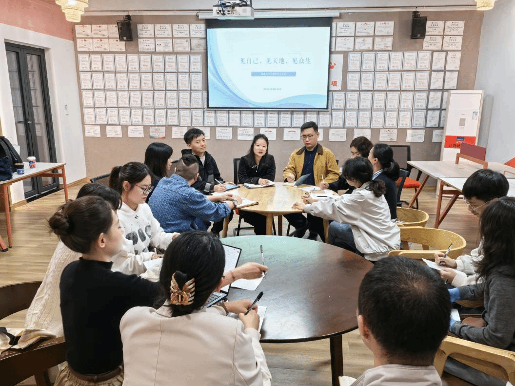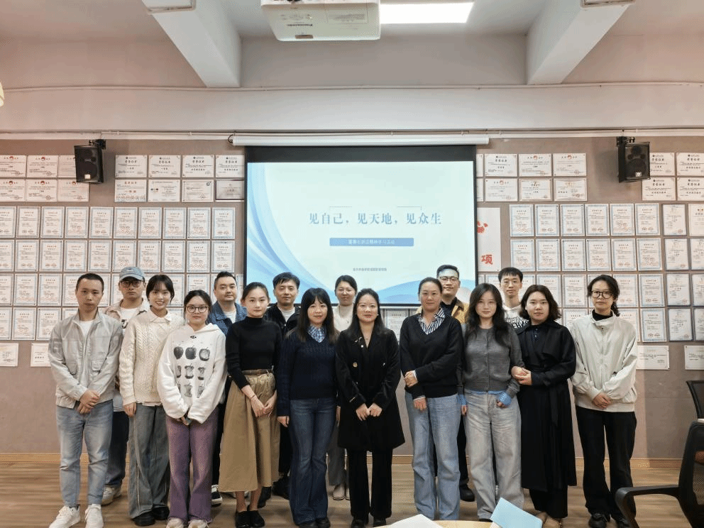 2024年11月4日,戏剧影视学院副院长王芳与影视工程教研室主任秦琦琅、影视文学与美术教研室主任杨帆一起同各专任教师齐聚一堂,深入学习董事长的讲话精神。本次学习主题为“见自己、见天地、见众生”。董事长在讲话中强调,教师应以自我认知为起点,不断探索教育的广阔天地,充分理解学校“四位一体双院制”的特色教育理念和教学定位,最终实现对教育事业和学生成长的深刻理解。