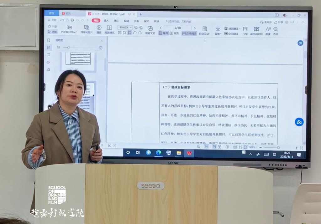 为进一步提高青年教师教学水平,创新教育教学方式,推动教育内涵发展,提升教学质量,3月15日,戏剧影视学院于实训楼S1303A开展了青年教师教学竞赛,本次竞赛由校督导葛君伟教授,副院长王芳教授、动画专业建设负责人李如冰副教授、袁梦茹老师担任评委。