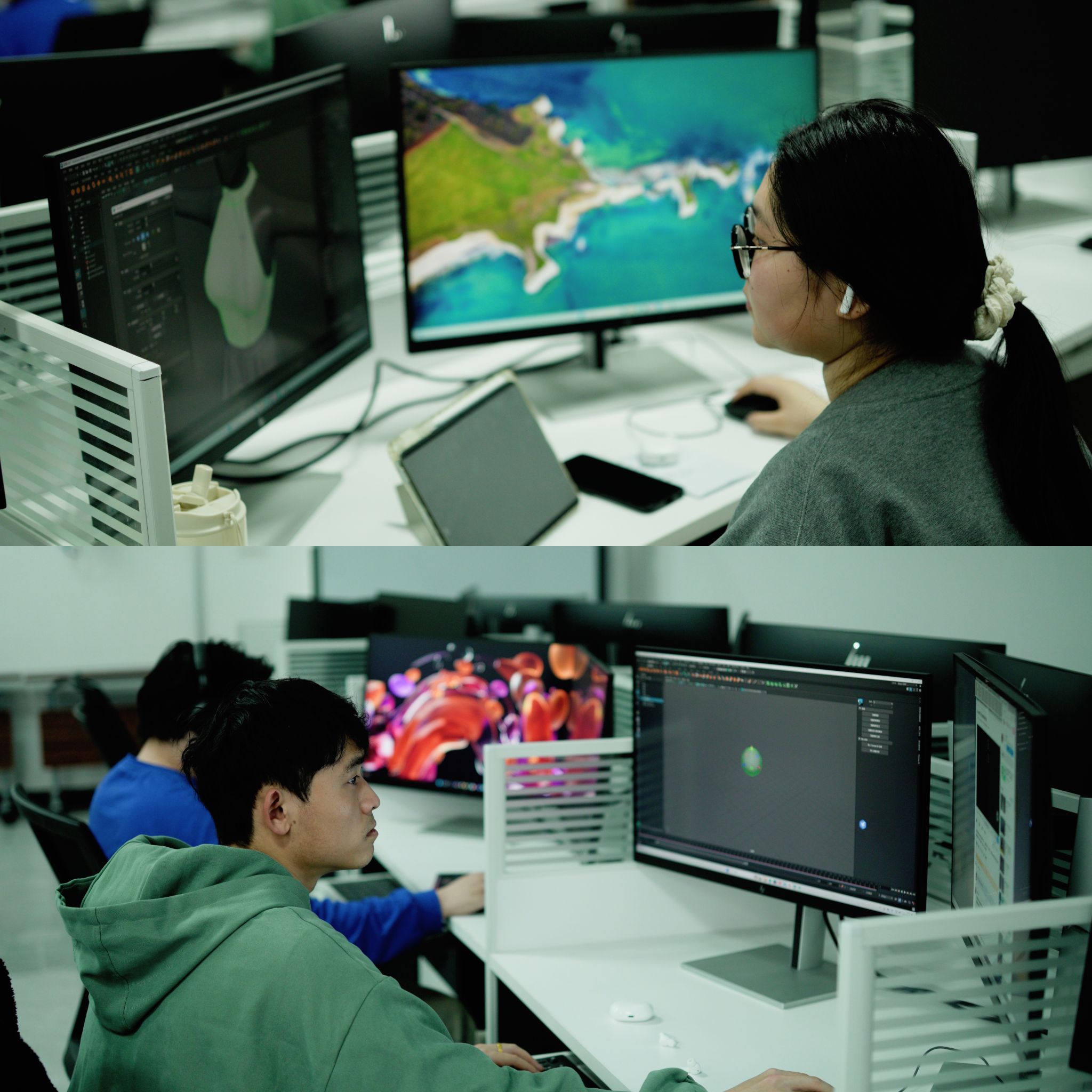 数字动画制作产业学院通过构建“双轨并行”的培养机制,从影视、动画行业全产业链入手深化产教融合。一方面,吸纳行业助力“走进来”,引入若森等企业技术专家组建产业导师团队,以真实项目为载体开展教学,使学生掌握行业前沿技术。另一方面,推动教师团队“走出去”,选派优秀教师赴企业挂职锻炼,将行业技术标准融入课程内。近一年来已有20余名师生参与若森等企业的各类项目实践,形成了“教学链-人才链-产业链”的闭环培养模式。