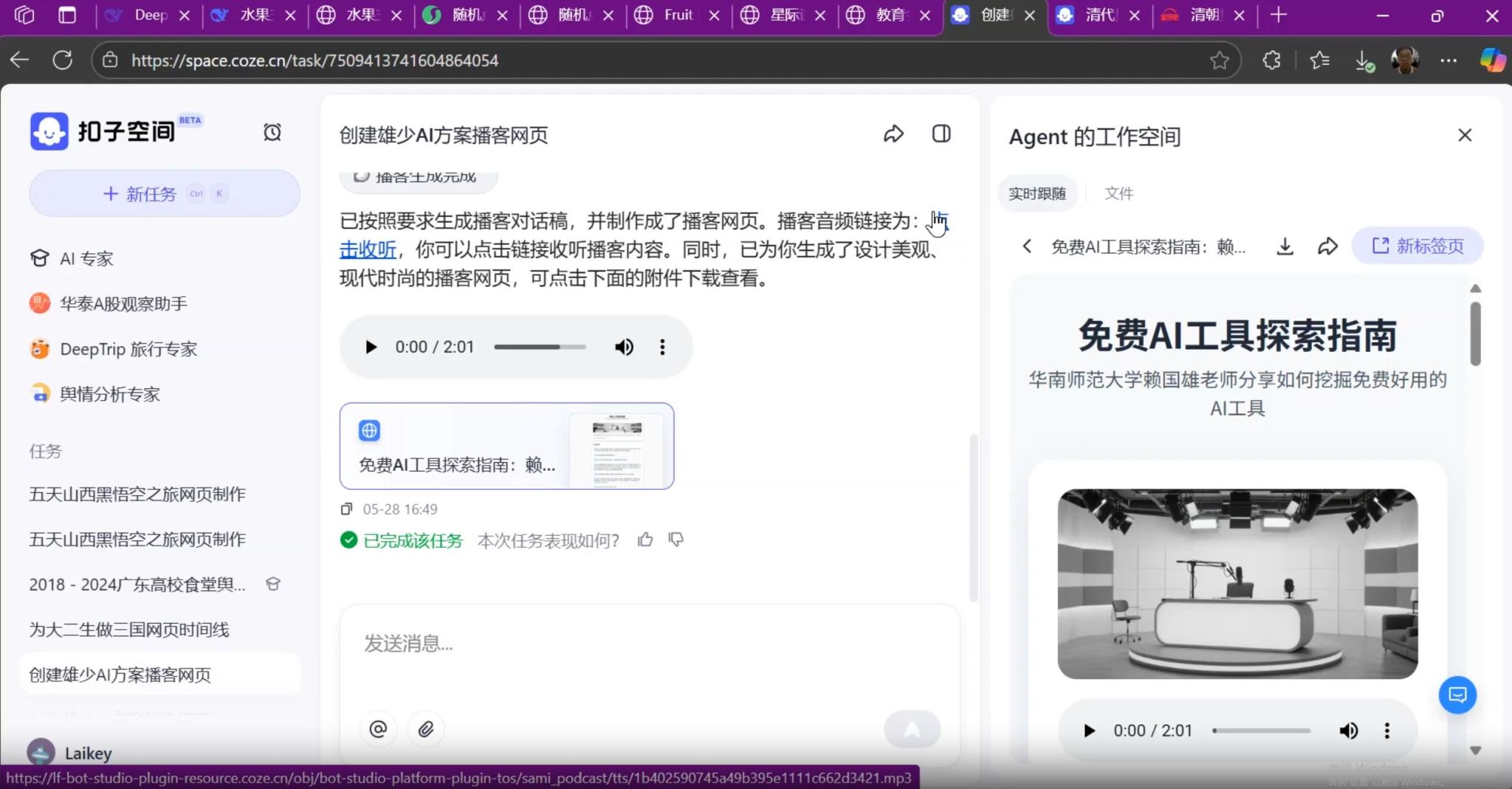 研修围绕DeepSeek类AI工具的教育全链路应用展开,共设四大核心模块。第一课《DeepSeek的AI赋能教育全链路》系统梳理了AI在教学设计、课堂实施、学习评价、教学反思等完整流程中的嵌入路径与案例示范,使杨帆老师对AI如何贯穿教学全程有了全景式理解。第二课《国产AI工具组合包的互补式应用》聚焦国内主流AI平台(讯飞星火、智谱清言、通义千问等)的功能差异与协同策略,现场演示多工具组合完成学情分析、互动问答、作业批改等任务,帮助杨帆老师构建了高效、低成本的AI教学工具矩阵。