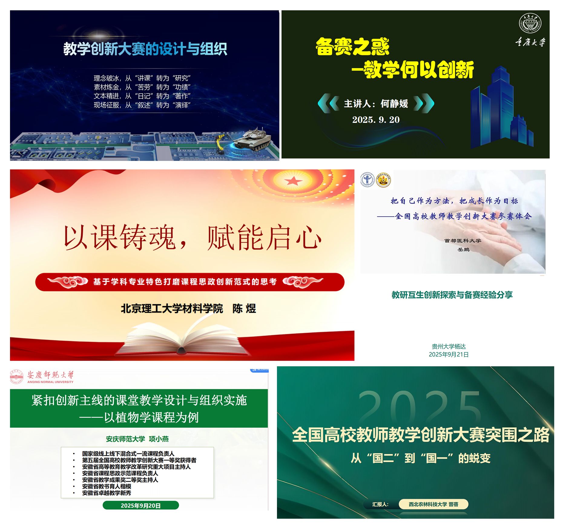 培训内容围绕教学创新大赛的七大组别展开,涵盖新工科、新文科、新医科、新农科、基础课程、课程思政与产教融合等多个方向。重点聚焦教学创新成果报告撰写、课堂教学实录视频设计与拍摄、教学大纲与教案优化、现场汇报演练等核心环节,通过案例解析、方法讲解与经验分享,全面提升教师对教学创新大赛的理解与实操能力。