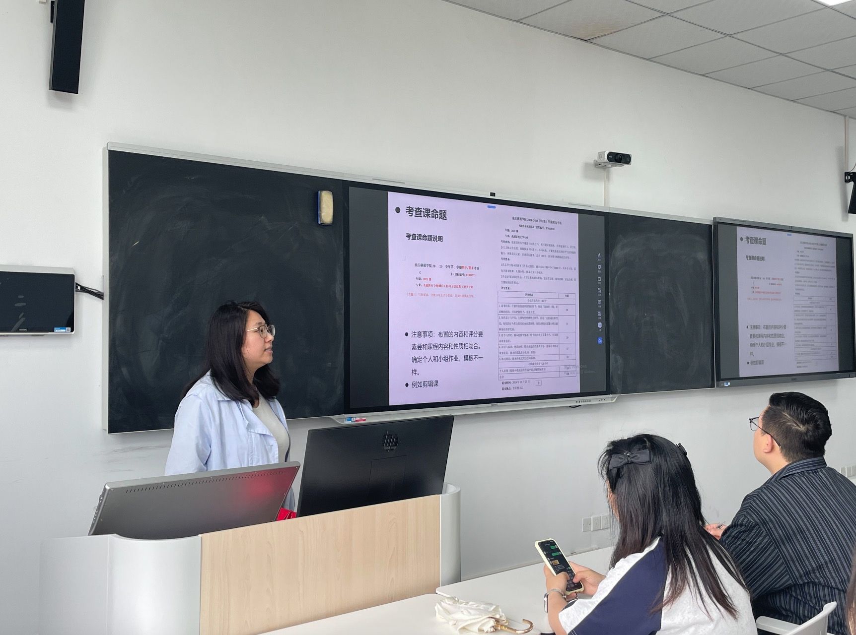 郭嘉琦老师首先就教学大纲与试题的对应关系进行了详细阐述。她强调,期末考试命题必须严格遵循教学大纲要求,确保试题覆盖各章节核心知识点。在题量设计上,要综合考虑课程难度和学生实际水平,设置合理的难度梯度。原则上笔试时间控制在120分钟,既要保证考查的全面性,又要兼顾学生的实际作答时间。同时,郭老师特别提醒,不同专业课程应根据其特点灵活调整考查重点,确保命题的针对性和适用性。