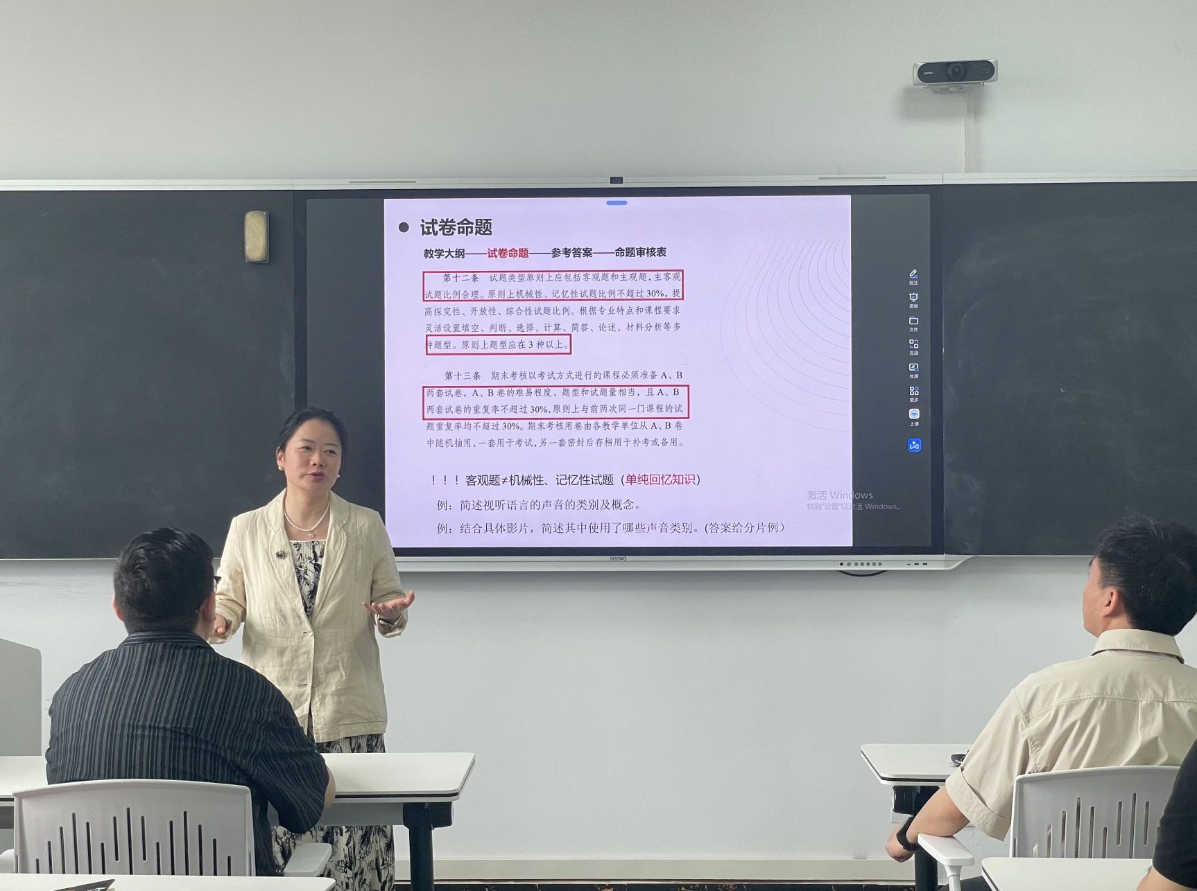 2025年5月28日中午1点,戏剧影视学院在贤者楼502会议室组织召开了期末考试试卷命题培训专题会议。本次会议由戏剧影视文学专业负责人郭嘉琦老师担任主讲,学院全体专任教师参加了此次培训。会议围绕期末考试命题工作的规范化、科学化要求展开深入研讨,为即将到来的期末考核工作做好充分准备。