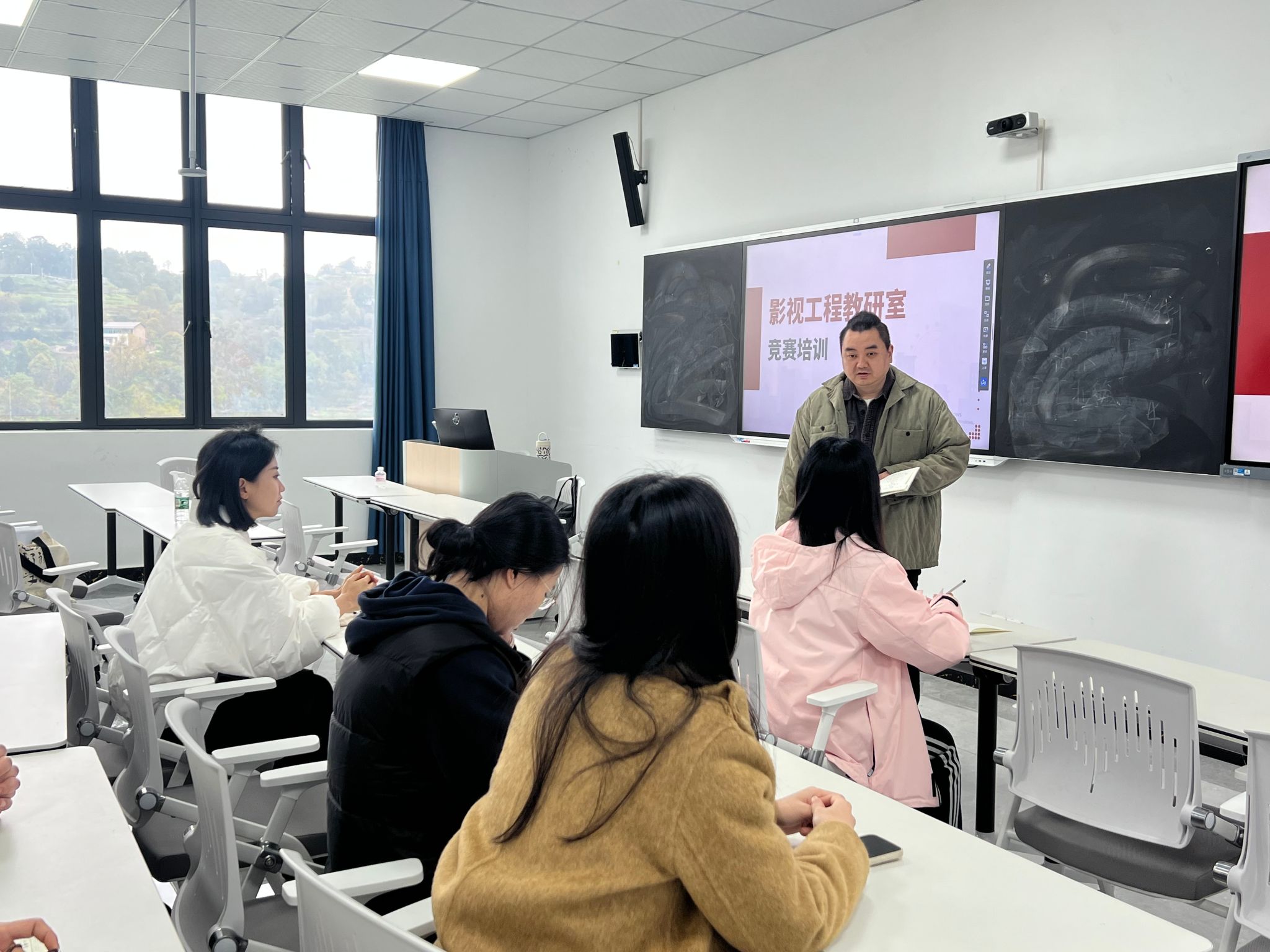 吴主任进一步指出,教师在指导学生参赛时,要注重培养学生的跨学科思维,鼓励他们将影视工程技术与艺术创意相结合,打造出既有技术含量又有人文温度的作品。“大广赛、好创意等赛事不仅是学生展示创意与实践能力的舞台,更是教师教学水平的试金石。希望各位老师能够以赛促教,通过竞赛更直观地了解学生的学习效果,发现教学中的不足,从而革新教学内容与方法。”