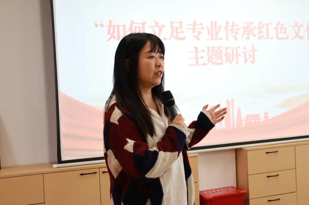 教师党支部书记周极同志通过日常教学中的课程设置以及学生毕业设计内容创作等方向,引导同学们往乡村振兴、红色文化传承等方向发力,彰显青年担当。学生党支部教师孔金凤同志从强化理论学习、促进班团融合、挖掘红色文脉等三个方面出发,引导学生创作红色剧本、用镜头记录红色故事等形式传播红色文化,让红色基因在专业中“活起来、传下去”。学生党支部席瑾怡同志从自身专业出发,发挥绘画专业特长,以画笔勾勒红色故事,通过墙绘等志愿活动服务乡村,实现专业实践与文化发展深度融合。入党积极分子李联莉同学从新媒体技术专业出发,提出可以通过短视频创作、新媒体运营、举办创意类比赛等方式,拍摄生动有趣的红色主题短视频,发布红色人物故事,带动身边同学一起扩大红色文化的传播力度。