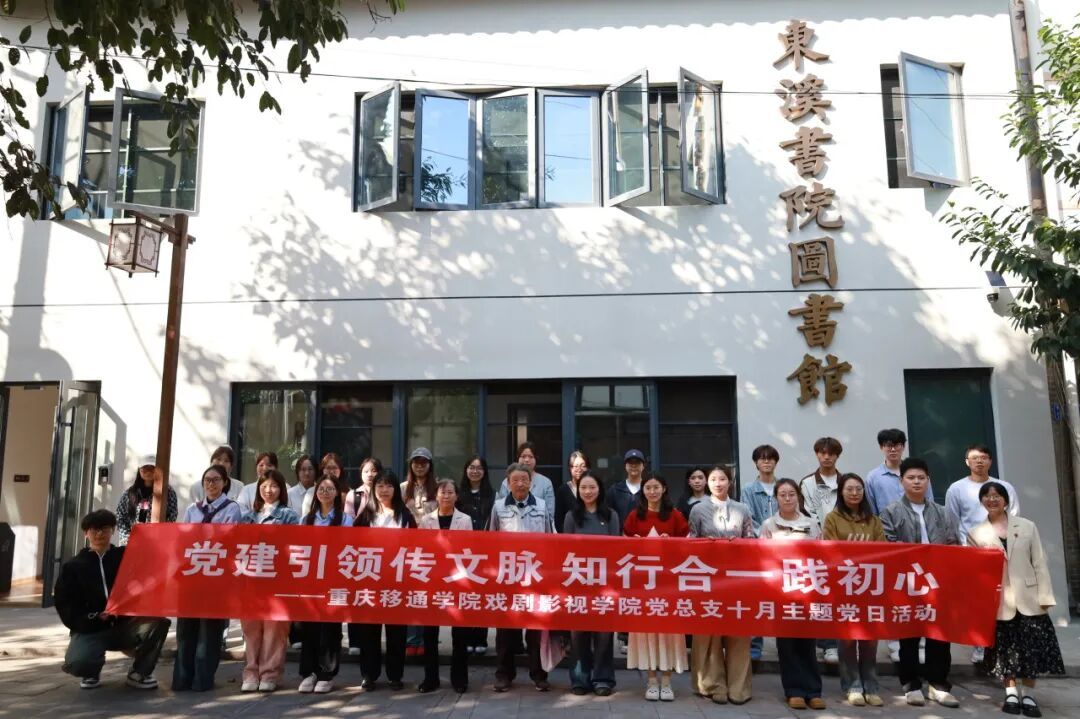 为深入学习贯彻党的二十届三中全会精神,以文化自信筑牢强国复兴精神之基,推动红色文化与戏剧影视学院各专业深度融合,10月28日,重庆移通学院戏剧影视学院学生党支部、教师党支部赴东溪书院开展主题党日活动。本次活动以“政治引领+专业实践”为驱动,将党性教育与艺术教育深度结合,在红色文化浸润中锤炼师生党员的政治品格,在专业实践中探索文化传承的艺术路径。