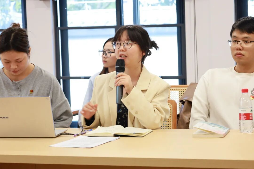 学生党支部书记林倩同志以党的二十届三中全会公报中“激发全民族文化创新创造活力,繁荣发展社会主义文化”为核心切入点。她指出,全会明确提出要“发展具有强大思想引领力、精神凝聚力、价值感召力、国际影响力的新时代中国特色社会主义文化”,这为戏剧影视专业的人才培养与实践创新指明了方向。“我们既要读懂全会对文化强国建设的战略定位,更要立足‘用镜头讲好中国故事、用艺术传承文化根脉’的专业使命,让文化自信融入创作实践的每一个环节。”林倩同志结合公报内容,回顾了此前支部组织的“东溪古镇红色文脉挖掘”“和美乡村墙绘志愿服务”等活动,强调要将全会精神与现有实践衔接起来,让专业技能成为传播中华优秀传统文化的桥梁。