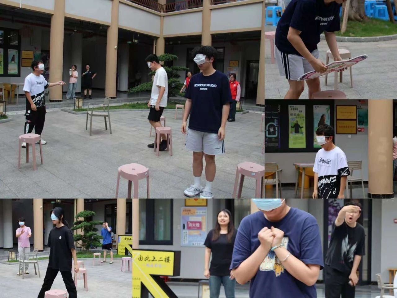 简单的纸片问答环节结束,活动进入到未知又刺激的游戏环节,两名同学一组,一人蒙上眼睛,另一人作为引导者,引导者将引领蒙眼的伙伴在设有障碍干扰的区域内行走,并限时2分钟。让参与的同学身临其境,深刻体会到恐惧源于未知,而信任与勇气是前行灯塔。走到终点拿到指定物品游戏结束后,作为蒙眼走路同学分享了面对未知时的恐惧与克服过程,以及引导者给予支持的细节,引导者则体会到了责任与信任的力量。现场欢声笑语,气氛高涨,引发在场同学的强烈共鸣,勇气是突破恐惧、携手前行的关键。