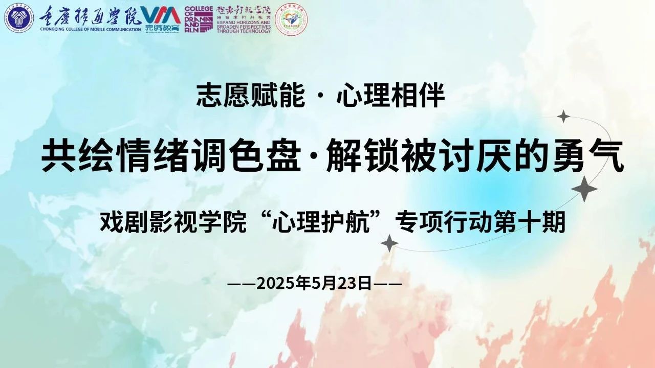 为了帮助缓解心理压力,科学管理情绪,以积极心态面对学习与生活,5月23日下午16:00,在观云中庭开展了共绘情绪调色盘•解锁被讨厌的勇气——戏剧影视学院“心理护航”专项行动第十期。由戏剧影视学院身心发展部和青年志愿者协会联合举办,通过创意环节及绘画调色进行互动,开启心灵探索之旅,为专业学习与未来发展筑牢心理基石。本次活动邀请到了戏剧影视学院心理专项岗位老师林倩参与其中,引导同学们突破自我设限,全面发展,以更轻松的姿态探索大学生活。