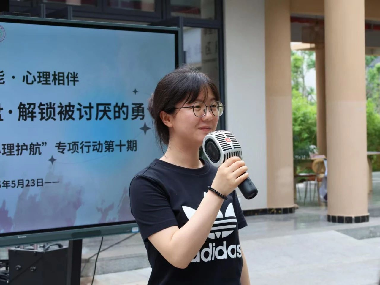 活动开始,现场参与的同学以小组为单位,在纸条上写下自己的相关经历,与组内成员互换纸条。主持人引领大家共同思考:“如何在面对自己的不足时不害怕被人讨厌”。现场的同学积极地分享自己的看法,有的同学说:“接纳自己,接纳不足,不足或许不是缺点,只是还没被看见的特质。”有的同学说:“经历只会让我更明确努力方向,别人的评价像风一样会飘过,但我的目标永远站在自己心里。”还有的同学说到:“勇气不是永不恐惧,而是带着恐惧继续前行。不用‘完美’绑架自己,而是把不足当作成长的刻度,或许就会发现,真实的你,比想象中更值得被喜欢。”同学们在交流中逐渐接纳自我,勇敢正视缺点。