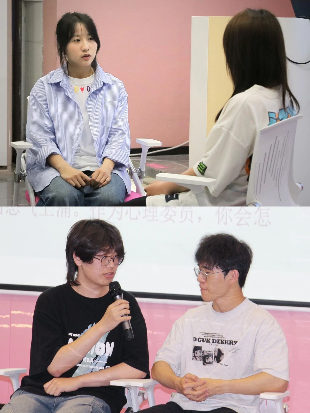 第二环节“实战模拟”聚焦心理危机干预能力,选手根据学业压力、人际关系、情绪调节、恋爱、环境适应五个主题自行呈现案例,并对案例中存在的心理问题进行模拟会谈、案例分析或心理情景剧现场展示,任选其一,展现心理委员解决问题的能力。