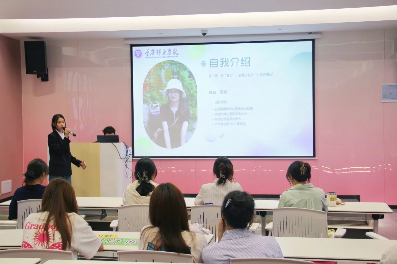 心理委员作为心理健康教育工作的重要组成部分,在高校心理健康教育工作中发挥着重要作用,为了推进心理健康教育工作持续向前,提升各班级心理委员的职业化意识和专业化能力。5月6日下午18:00,“心动挑战,护航青春”戏剧影视学院心理委员技能大赛初赛在丁山书院·处女座功能室顺利举行。本次比赛邀请到学校心理健康中心侯茜老师,戏剧影视学院组织部指导老师李梦雪老师、竞技体育板块指导老师周江琴老师及心理专项岗位老师林倩老师担任评委,为选手提供专业指导,聚焦心理健康,提升心理委员专业素养,筑牢心理健康防线。