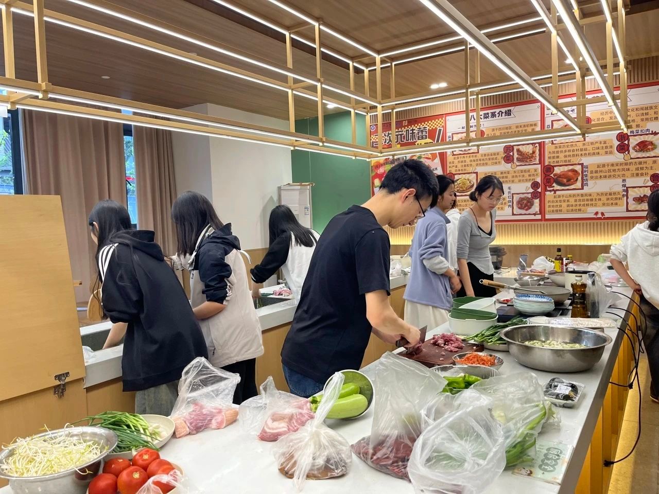 为了促进师生互动、增强同学们对烹饪的兴趣,并加深对食材搭配与健康饮食的理解,2025年4月26日下午17:00,戏剧影视学院异科导师陈艺老师携手数字经济与信息管理学院异科导师刘成成,在南江书院笃行共享生活厨房举办了一场别开生面的师生联手烹饪美食活动。活动旨在让同学们在实际操作中感受烹饪的乐趣,并通过与导师们的合作,提升大家对健康饮食理念的认知,学会如何将健康与美味相结合,探索更加丰富的烹饪技巧。