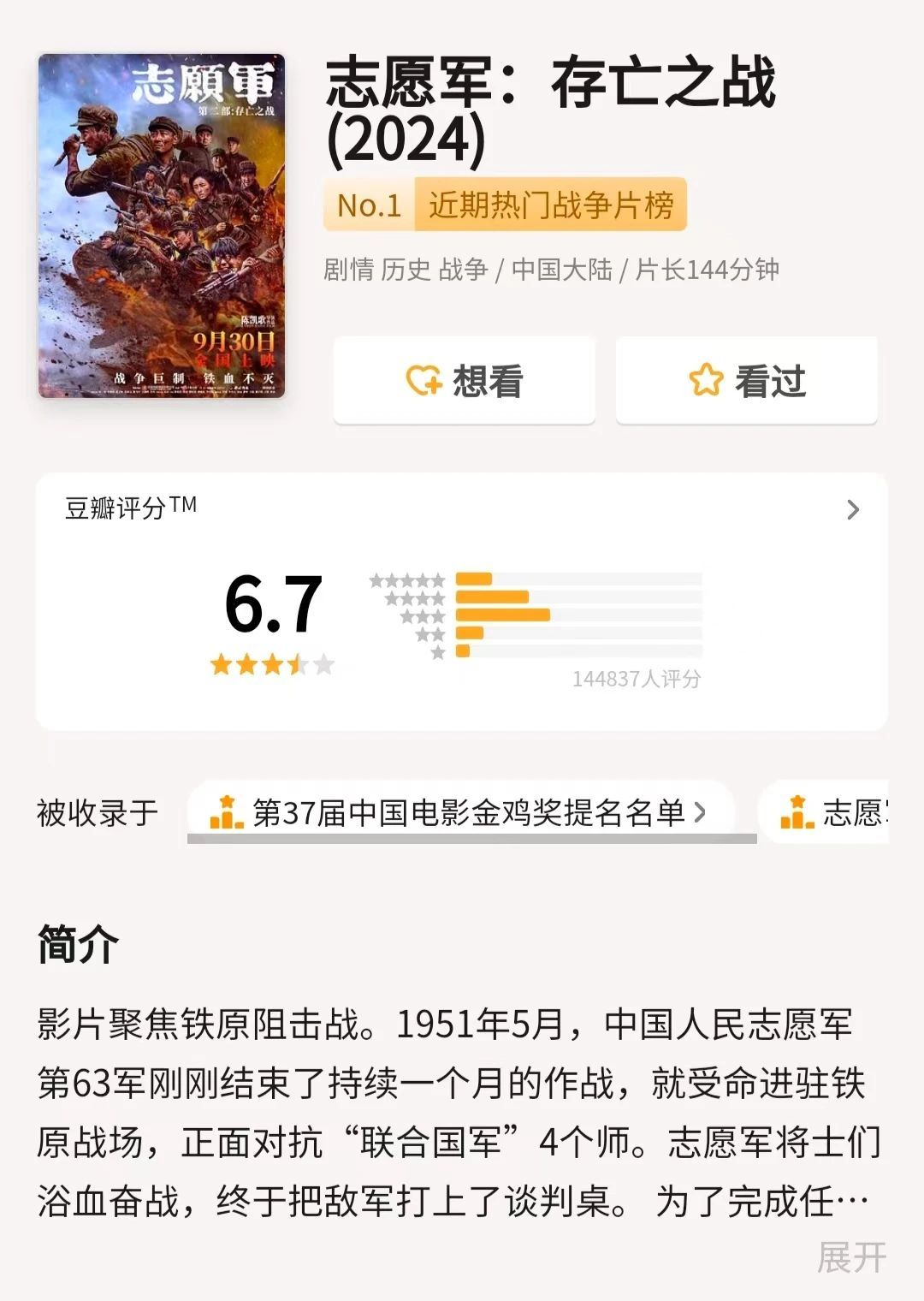 小戏影评:影片聚焦铁原阻击战,对战争过程表现出色。几场战斗戏份安排详略适宜,铁原阻击战打响前的卡车遇袭、夜袭比利时营两场小规模战斗,既预热气氛,又展示人物本领与战斗精彩。正戏中,阻击战情节丰富,从战前布置到各阶段战斗,环环相扣、跌宕起伏,提升观赏性 。多线叙事条理清晰,以李默尹、李想、李晓一家三口为核心,串联我方不同线索人物,最后汇聚到铁原阻击战,奏响英雄赞歌 。