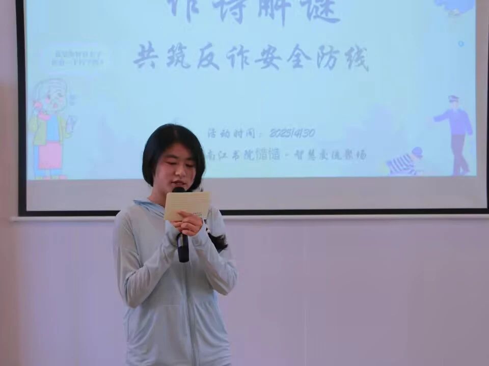 “以诗言安、以智破诈”。为筑牢校园反诈防线,戏剧影视学院生活权益部于2025年4月30日下午13:30在南江书院慥慥•智慧交流聚场开展戏娃权益说之“以诗反诈,守护安全”主题活动。将传统诗词文化与反诈知识深度融合,不仅为反诈宣传注入新颖活力,更通过寓教于乐的方式,提升学生识诈防诈能力,构建起校园反诈的坚固防线,为师生营造安全、和谐、清朗的校园环境。