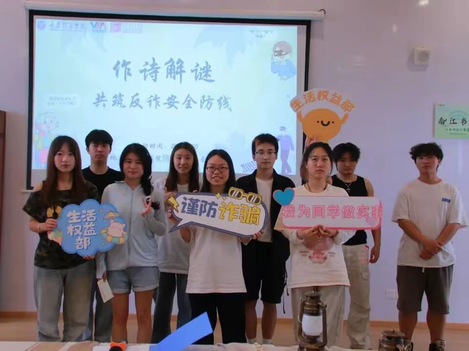 随着相机快门的轻响,这场别具匠心的反诈主题活动顺利落下帷幕。活动不仅有效提升了同学们的反诈能力,更营造出“人人懂安全、人人护权益”的校园氛围,培育了“以诗言安、以智破诈”的特色安全文化,实现了反诈宣传从理念向实践的延伸,为构建平安校园注入文化力量。