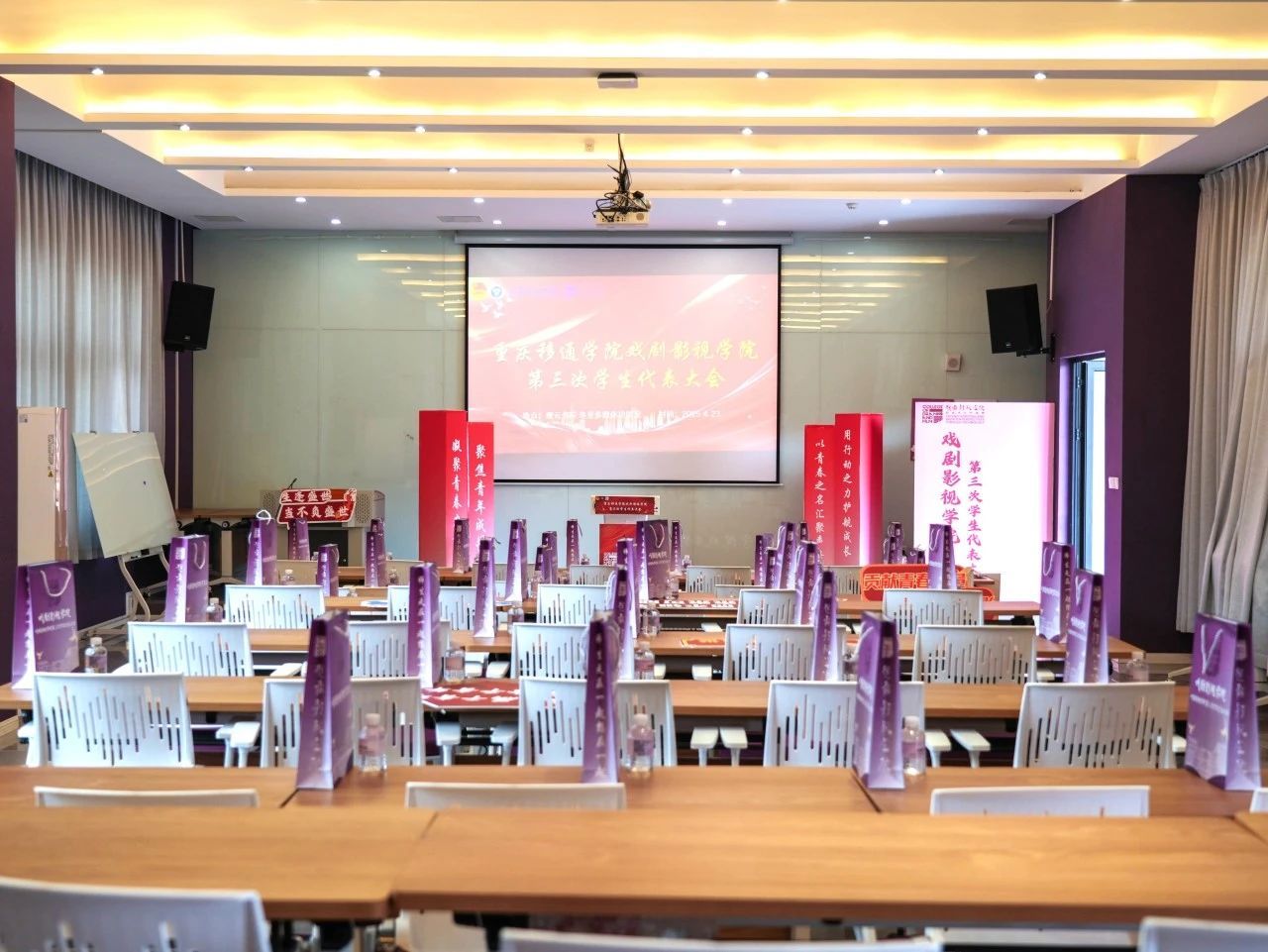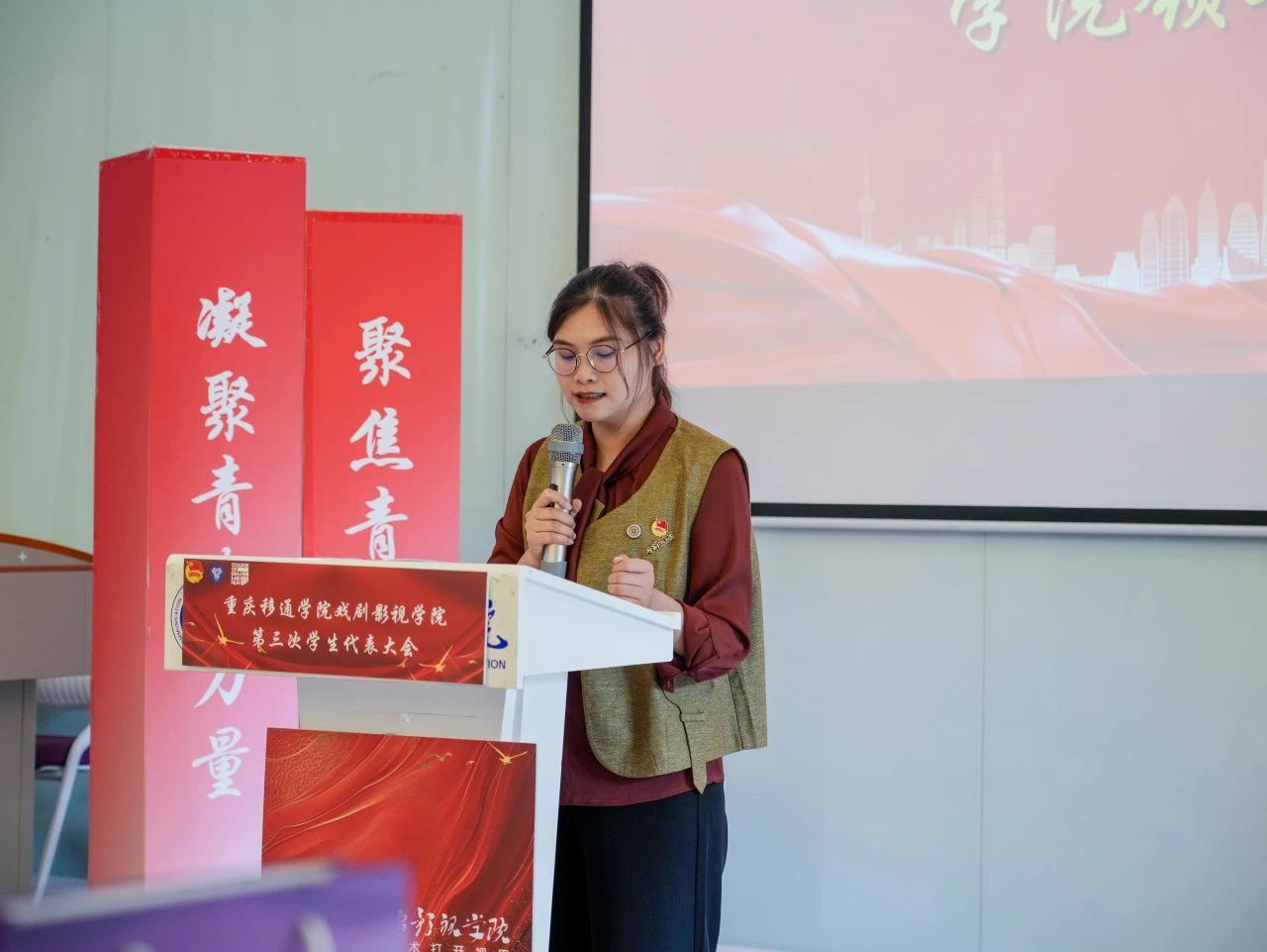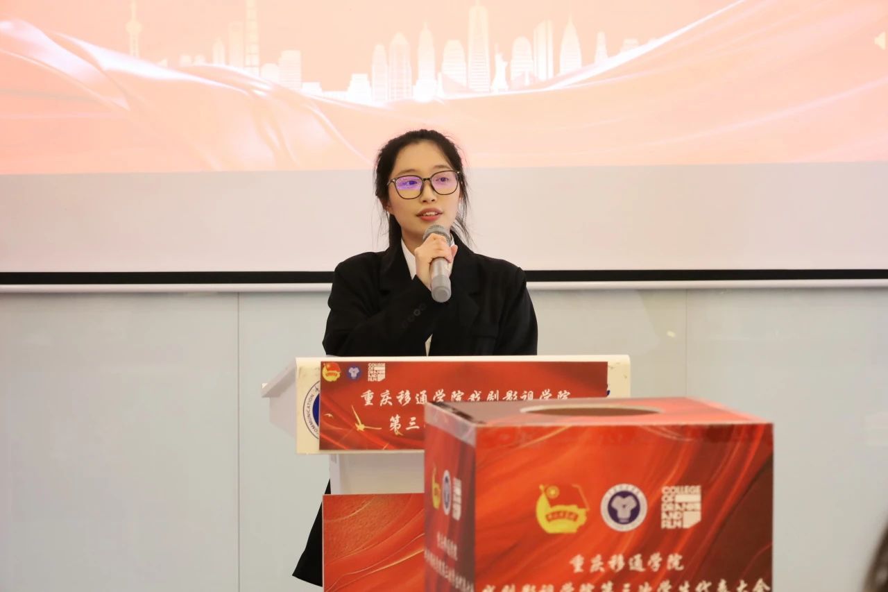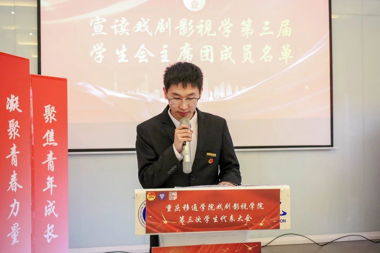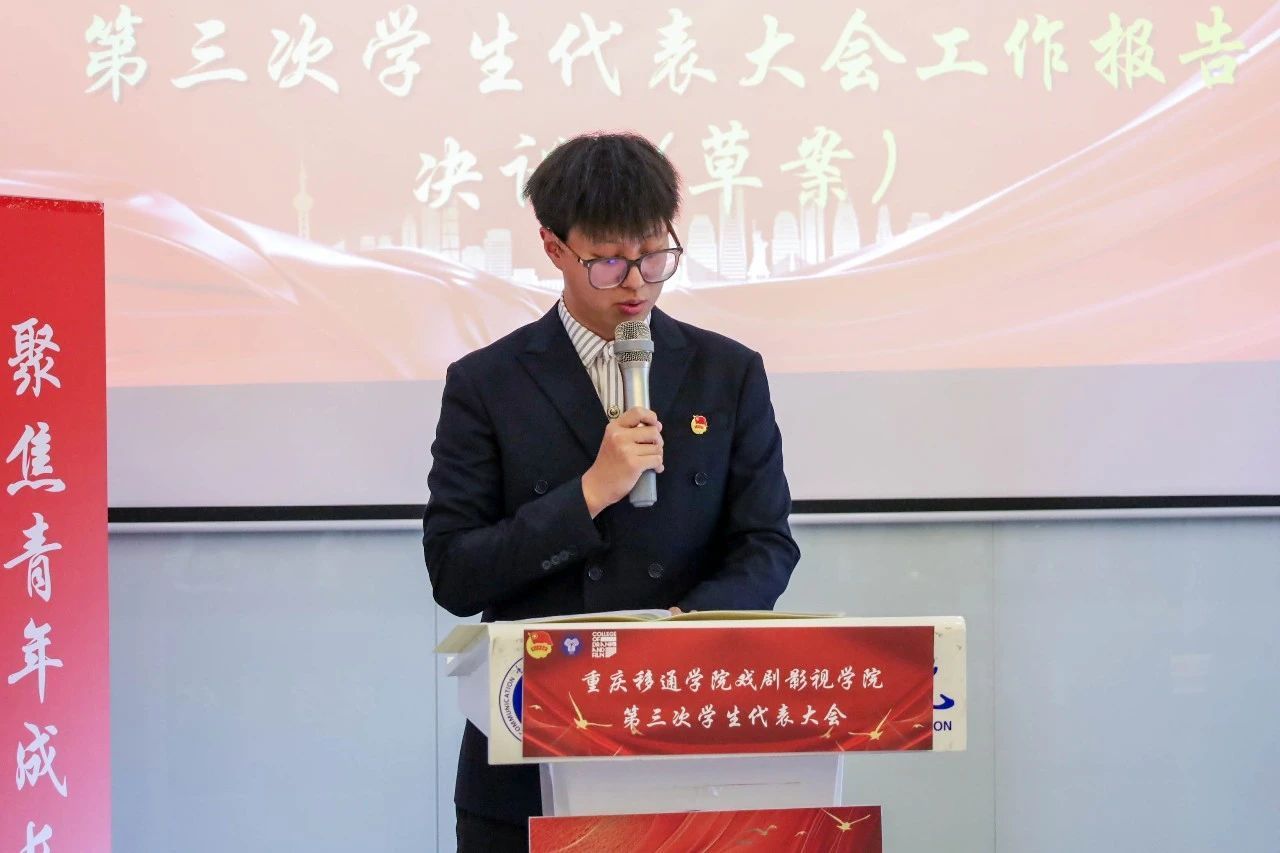 青春遇华年,奋斗启新篇。2025年4月23日16:00,重庆移通学院戏剧影视学院第三次学生代表大会在观云书院冬至·多媒体教室顺利召开。重庆移通学院校团委学生会指导老师曹誉莹,戏剧影视学院学生党支部书记、学工办主任曾玉娇,戏剧影视学院各活动版块指导老师,辅导员代表及34名学生代表参与大会。