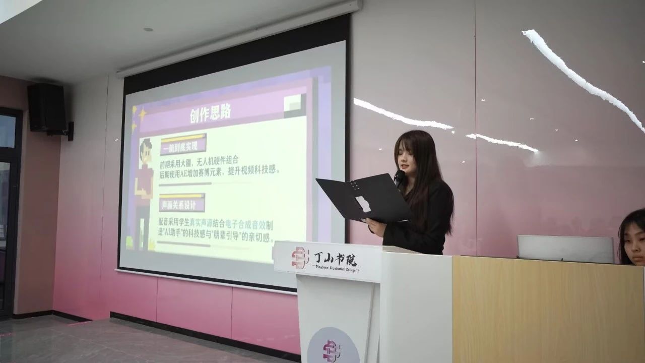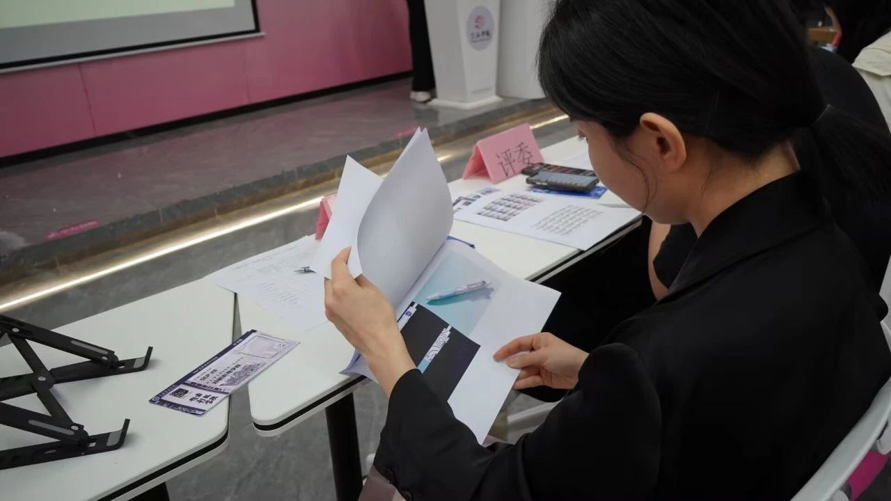 在审阅了所有视频类作品后,郑诗昱老师给予了积极的评价,强调无论是在视觉美感还是在表达力方面,都有许多作品表现卓越。随后,老师以温和的态度向各组参赛者指出了些许不足,并提出了改进建议。例如,视频的配音、结尾处理以及答辩的流畅性方面还有提升空间。文创类作品同样令人瞩目,多样化的创意在评委老师面前一一展现。付泽林老师认为,本次大赛的非视频类作品主题突出、形式多样,将现代元素与传统特色相结合,展现了新时代传播理念的生机与活力。同时,老师也指出了部分参赛者在答辩时表现出的缺乏自信和创意阐述不够清晰的问题。老师期望同学们能够以这次大赛为起点,在未来的创作过程中吸取经验,不断提高个人技能,创作出更多杰出且具有感染力的作品,为学校的招生宣传增添光彩。
