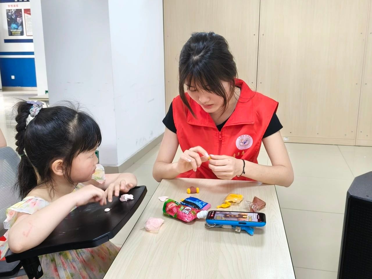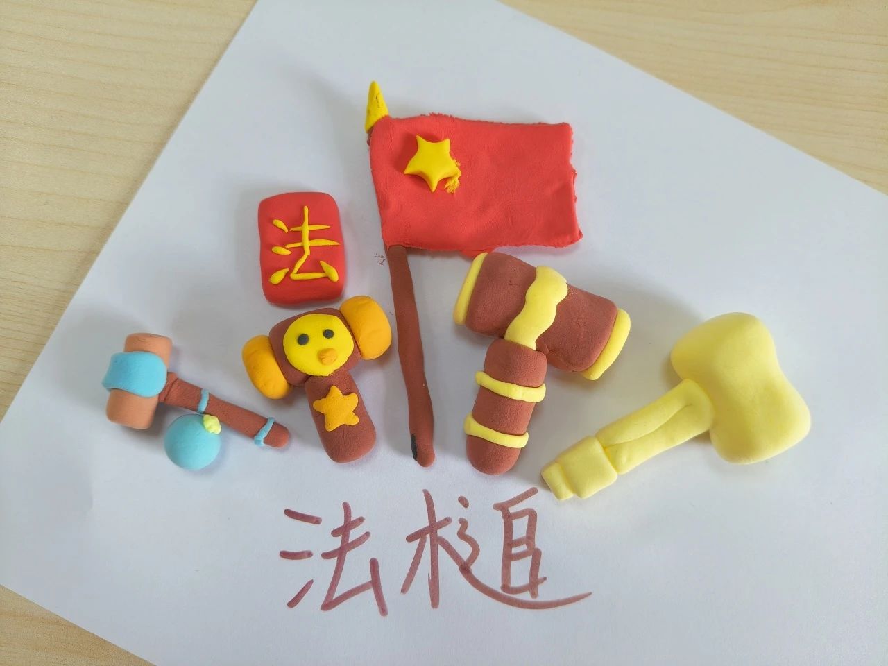随后,活动进入了普法元素小手工制作环节。小朋友们热情高涨,迫不及待地拿起黏土开始制作。志愿者们也参与其中,与小朋友们并肩作战。尽管有的小朋友在捏“法槌”时遇到了困难,形状总是歪歪扭扭,但在志愿者手把手地教他如何揉捏、塑形,同时讲解“法槌”的构成元素和象征意义时,小朋友们一边认真制作,一边倾听讲解,最终完成了属于自己的作品,并在动手过程中加深了对法律知识的理解。
