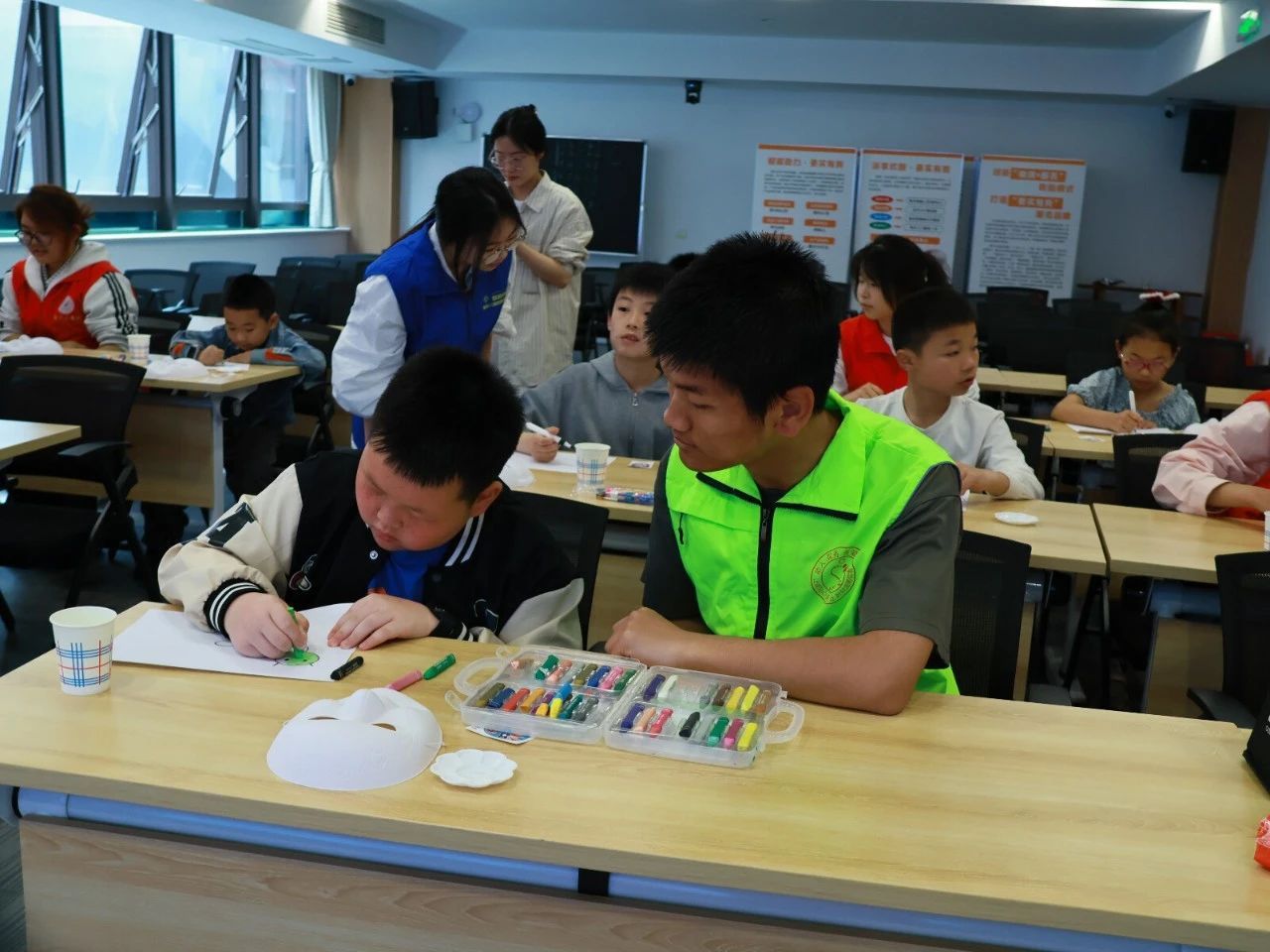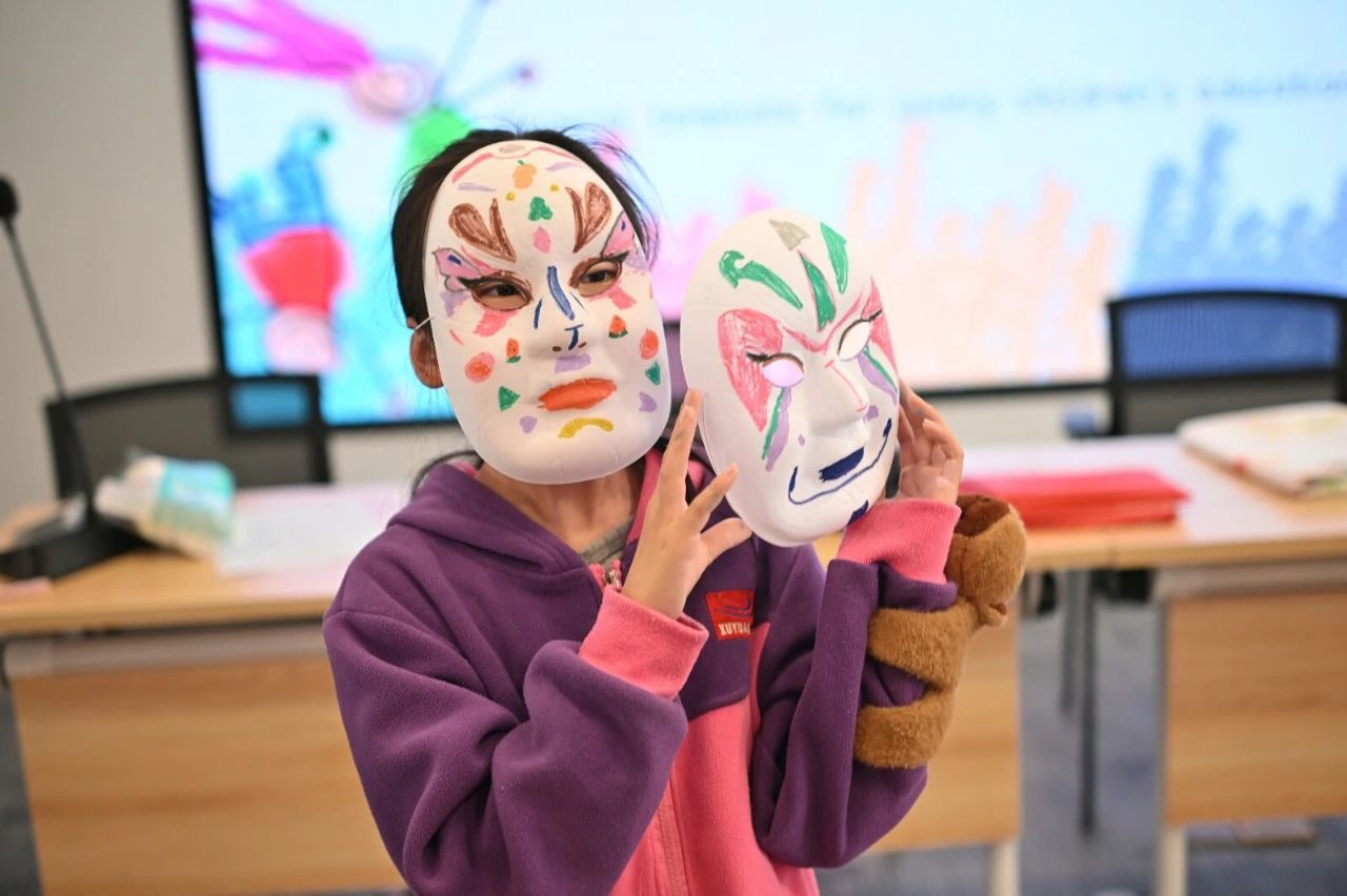 “京剧脸谱绘制,感受非遗魅力”环节同样精彩纷呈。志愿者借助图片、视频等形式介绍京剧脸谱,展示实物模型,让孩子们细致观察。随后的脸谱绘制过程中,孩子们认真运用所学知识,在志愿者的协助下,创作出一个个独具特色的京剧脸谱。这不仅让孩子们感受到了非遗传统文化的魅力,更增强了他们的文化认同感。