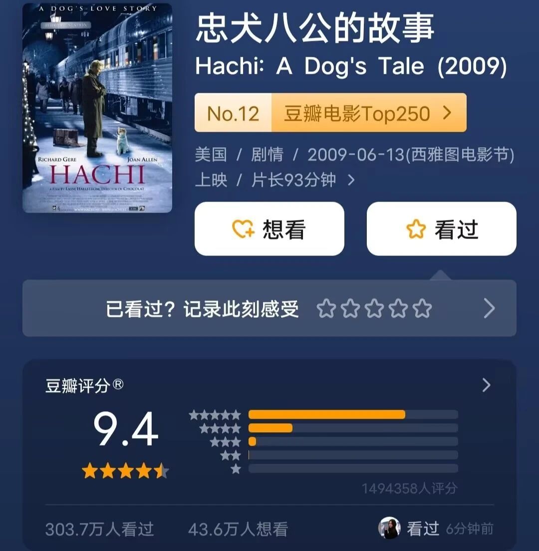 电影以八公对主人帕克的忠诚为核心,展现了八公日复一日、年复一年地在火车站等待主人归来的场景,这种纯粹的忠诚和爱让我动容。八公对主人的深情厚意,无关乎利益与回报,只是源于内心深处最本能的情感。