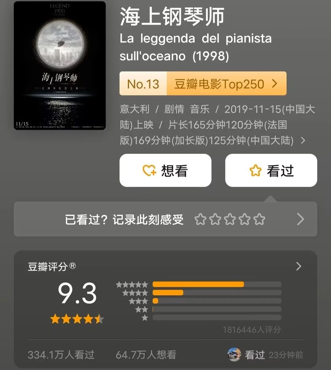 电影通过1900的故事,展现了他对自由的极致追求和对孤独的深刻理解。1900一生未曾下船,他选择在海上度过一生,守护着自己的音乐世界。这种对自由的坚守和对孤独的坦然,让我感受到一种独特的生命态度。