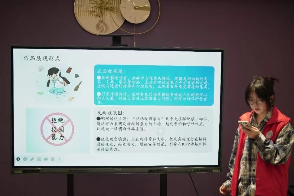 活动伊始的线上阶段,戏娃们展现出丰富的想象力和扎实的绘画基础,设计了风格多元、创意十足的墙绘作品,这些作品主题丰富,有的聚焦法律知识科普,有的着眼食品安全,还有的围绕垃圾分类,倡导绿色环保生活方式。戏娃们敏锐地捕捉社会热点问题,将其融入设计之中,每一幅作品都饱含着对社会发展的关注与思考。