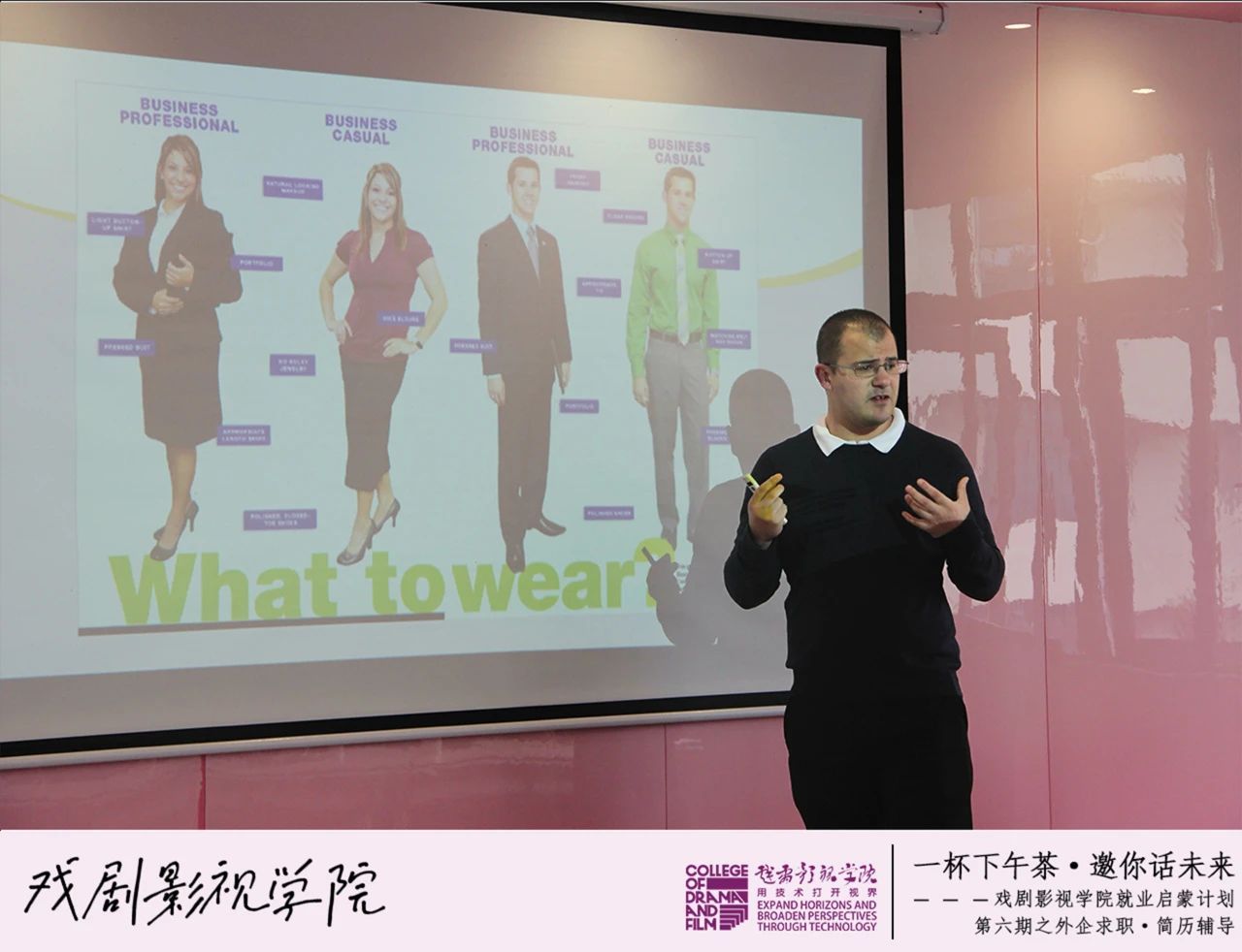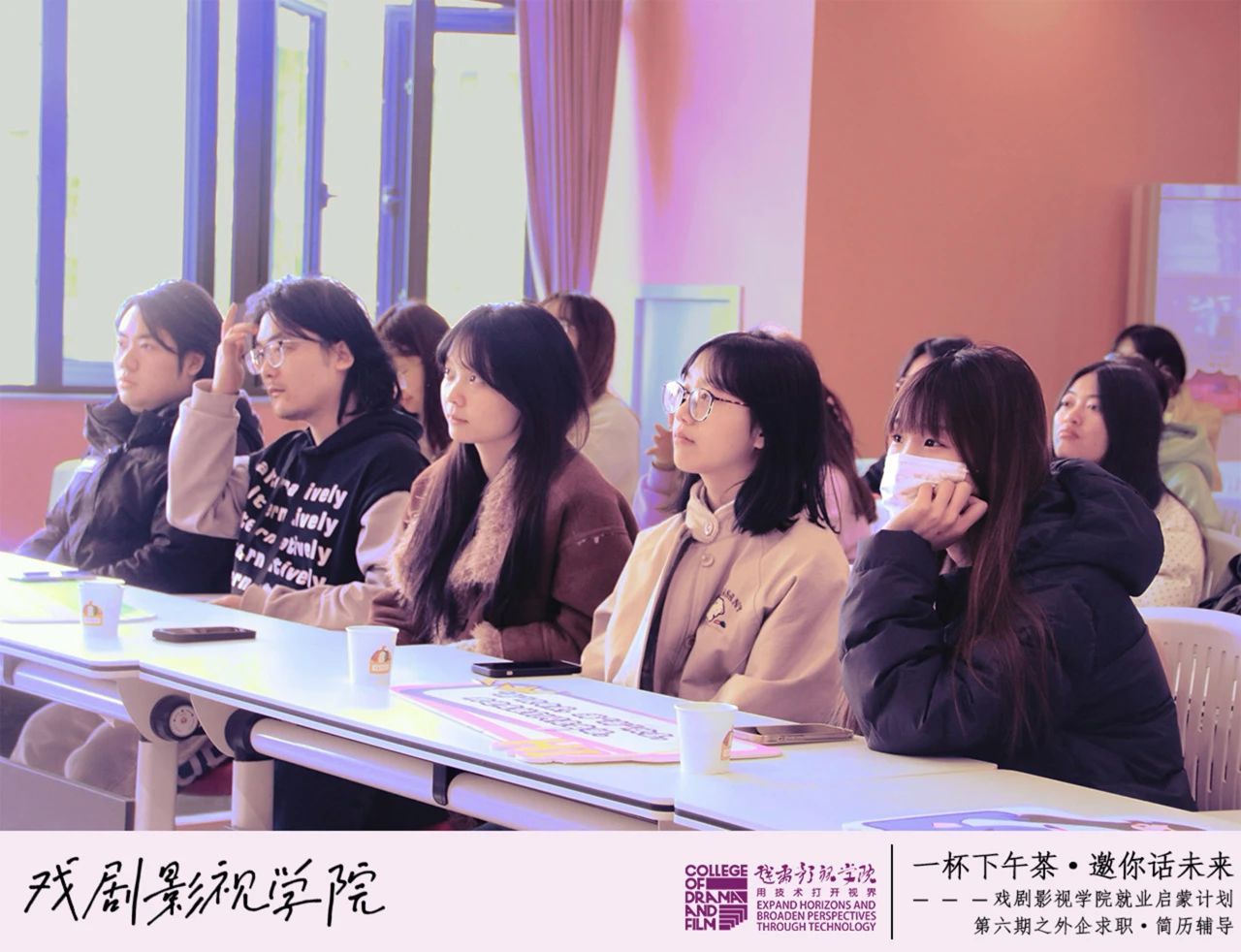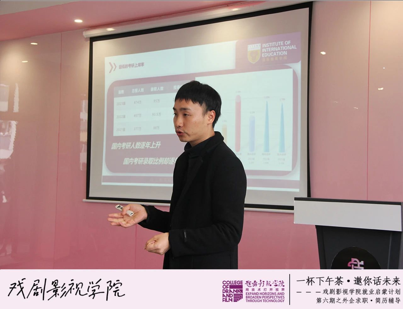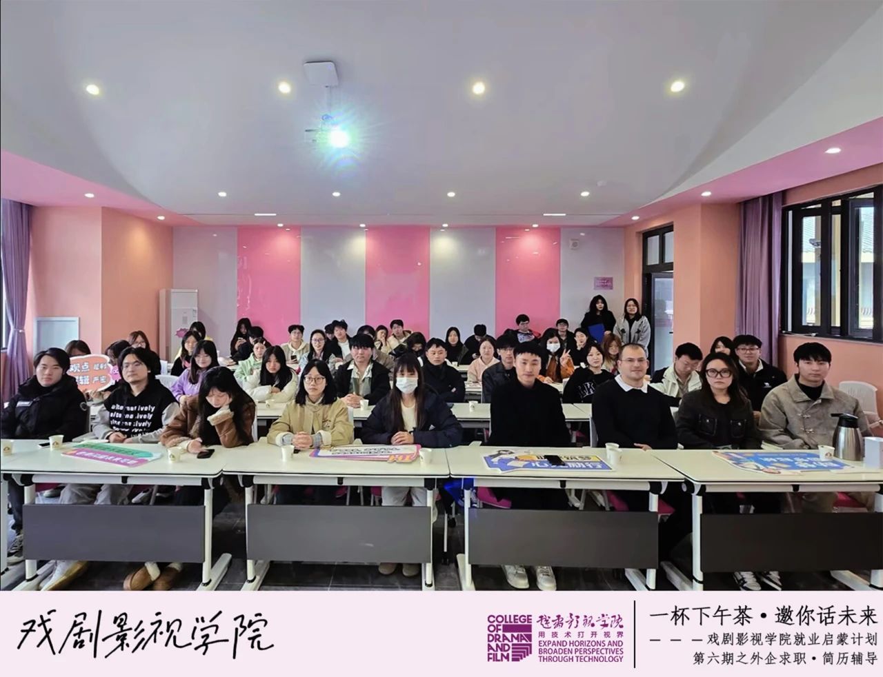 毕业季临近,面对考研、留学与外企求职的多重选择,许多学生陷入迷茫。为帮助同学们理清方向、规避风险,戏剧影视学院就创助理团于4月2日下午在丁山书院白羊座演讲培训室举办“‘一杯下午茶·邀你话未来’第六期之外企求职·简历辅导”活动。活动特别邀请到重庆移通学院外籍教师弗兰克・杰恩(Frank Jayne)老师、国际教育学院规划导师李老师与戏剧影视学院廖炳屹老师,为专升本及大三学生提供就业指导。