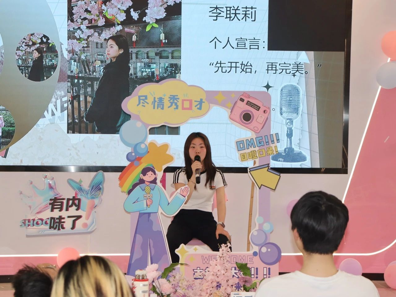 李联莉同学在舞台上的卓越风姿令人瞩目,荣获最佳台风奖。
