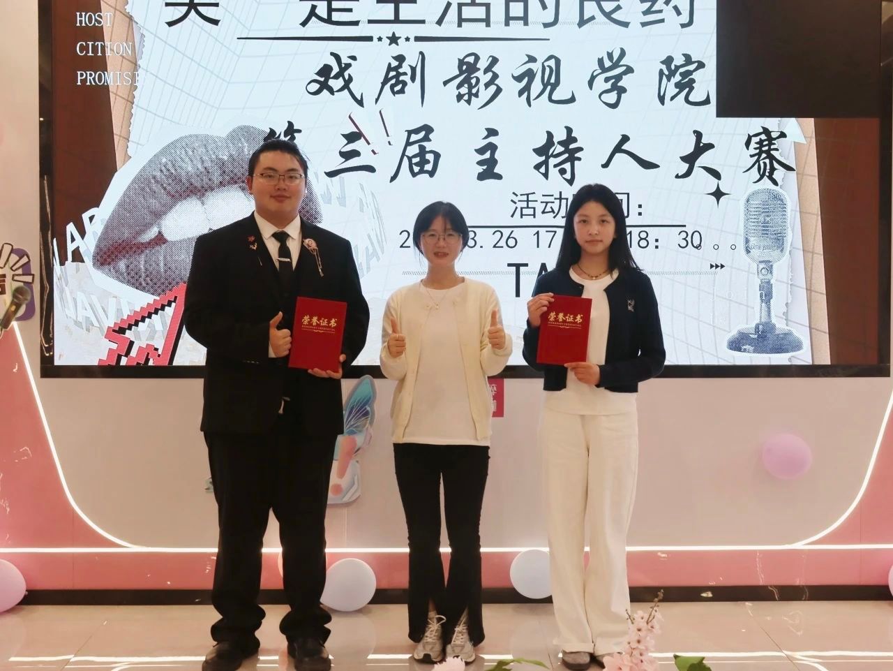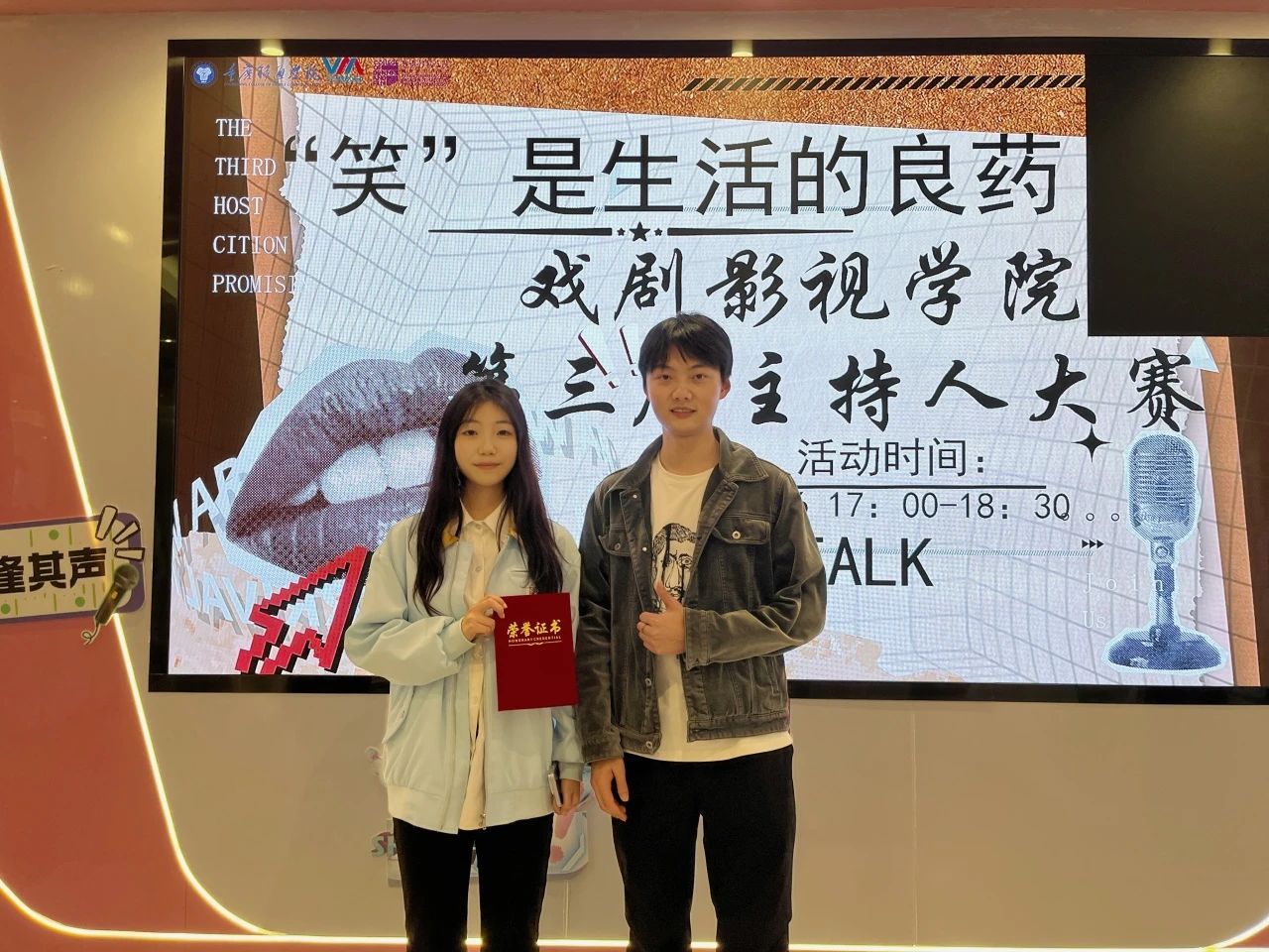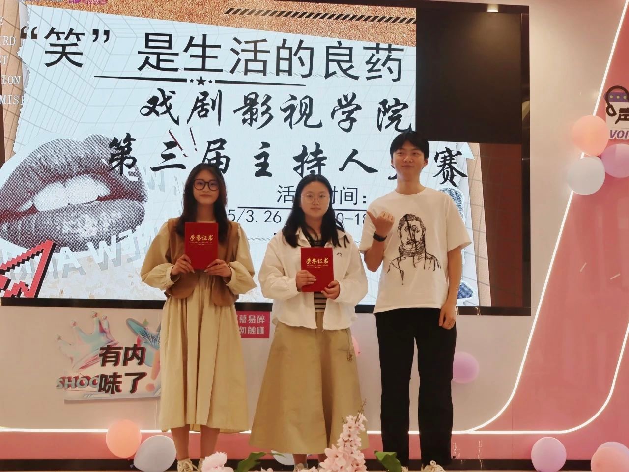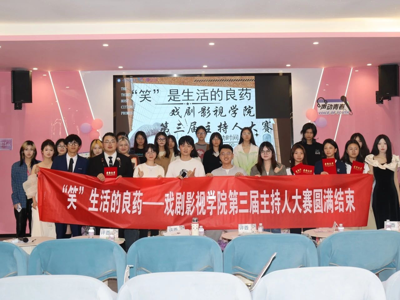 此次主持人大赛,为同学们搭建了一座展示自我才华的舞台,更借欢笑之力,让大家在紧张忙碌的学习生活中得到舒缓与治愈。正如大赛主题"'笑'是生活的良药"所诠释的,在这个充满压力的时代,同学们用欢声笑语为彼此送去慰藉。这场赛事留下的不仅是荣誉,更是一颗颗播撒在青春心田的快乐种子,等待着在未来绽放出更绚丽的花朵。