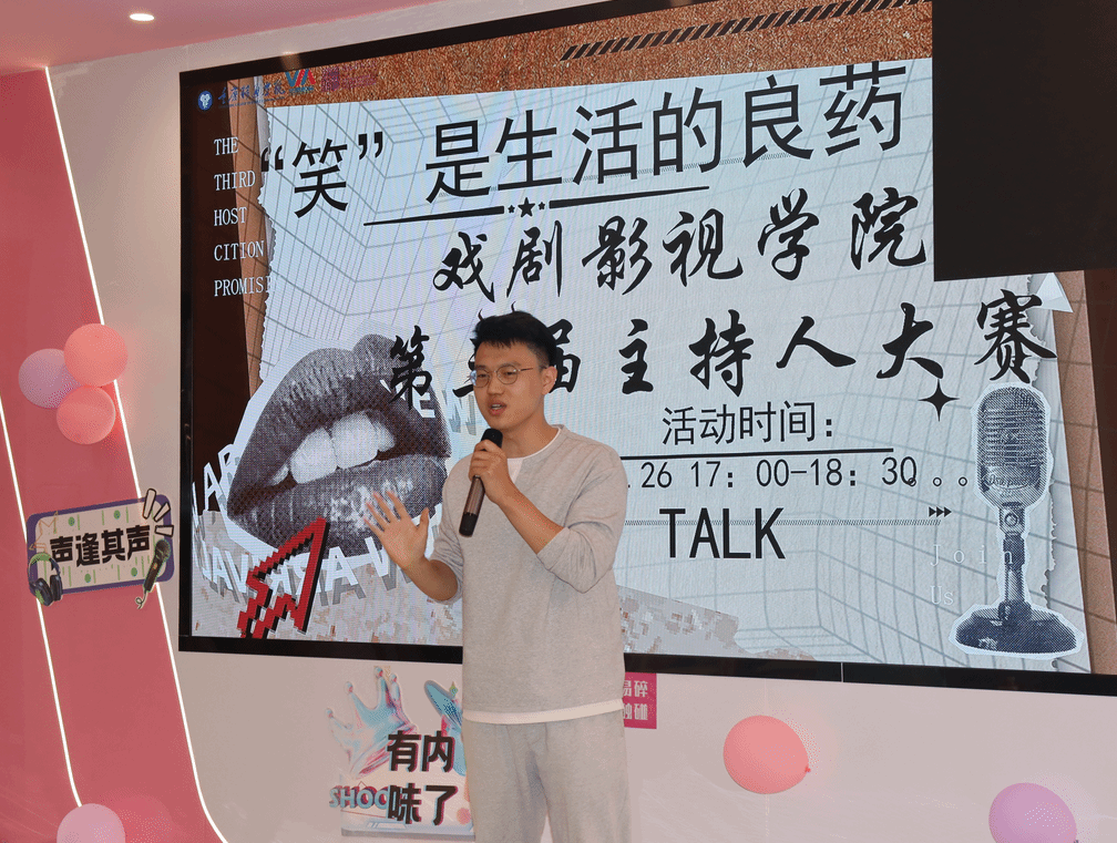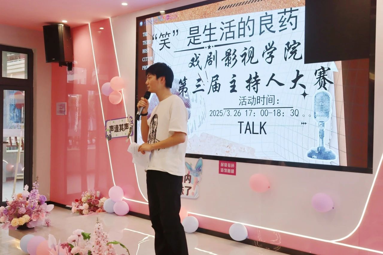 2025年3月26日,戏剧影视学院第三届主持人大赛以“‘笑’是生活的良药”为主题,在师生们的欢声笑语中顺利收官。本次大赛以脱口秀为媒介,以舞台为画卷,为学院艺术文化建设增添了鲜活的一笔。