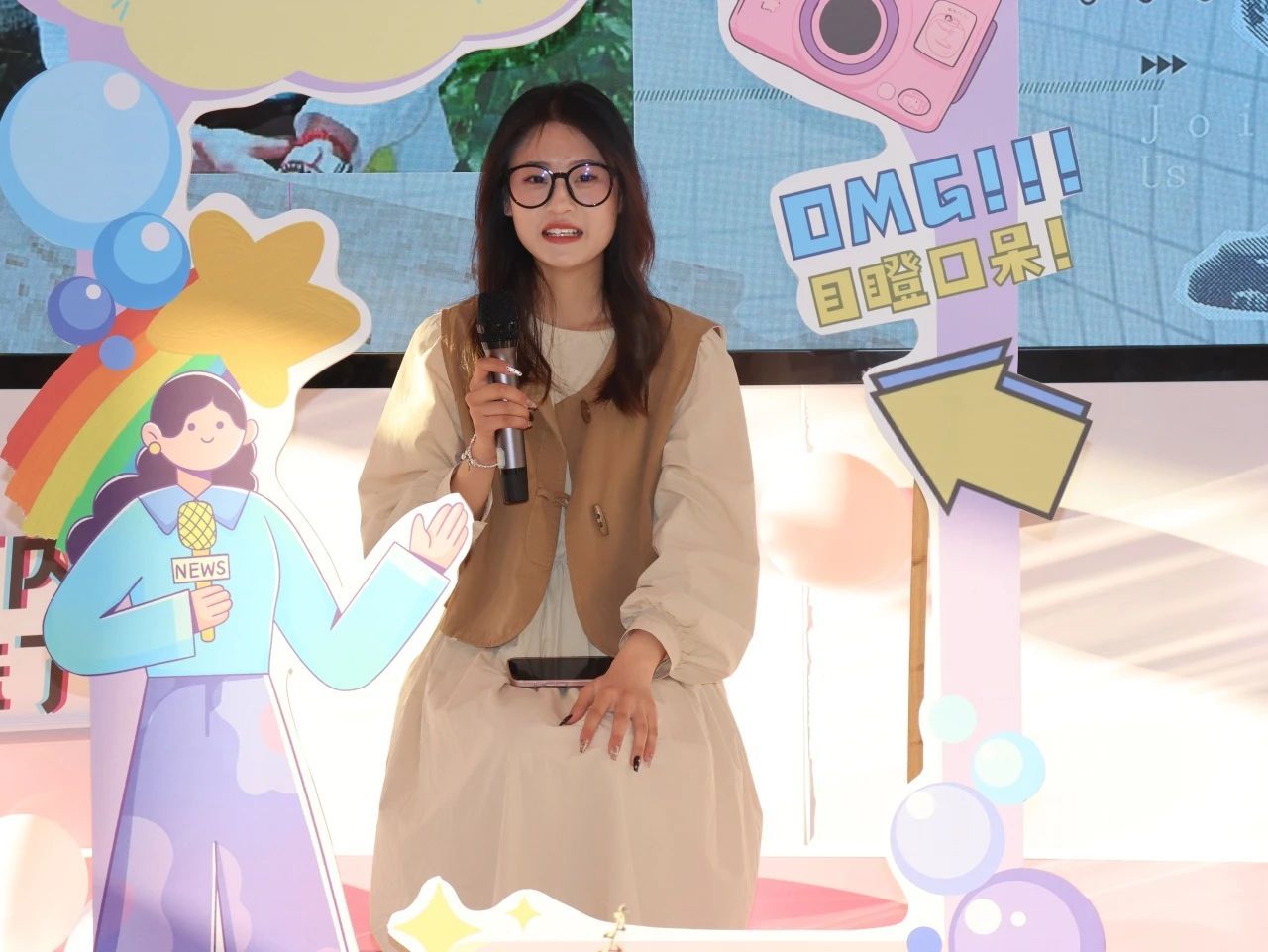 张梦媛以幽默创新的方式揭秘女生宿舍的“社死”化妆经历。