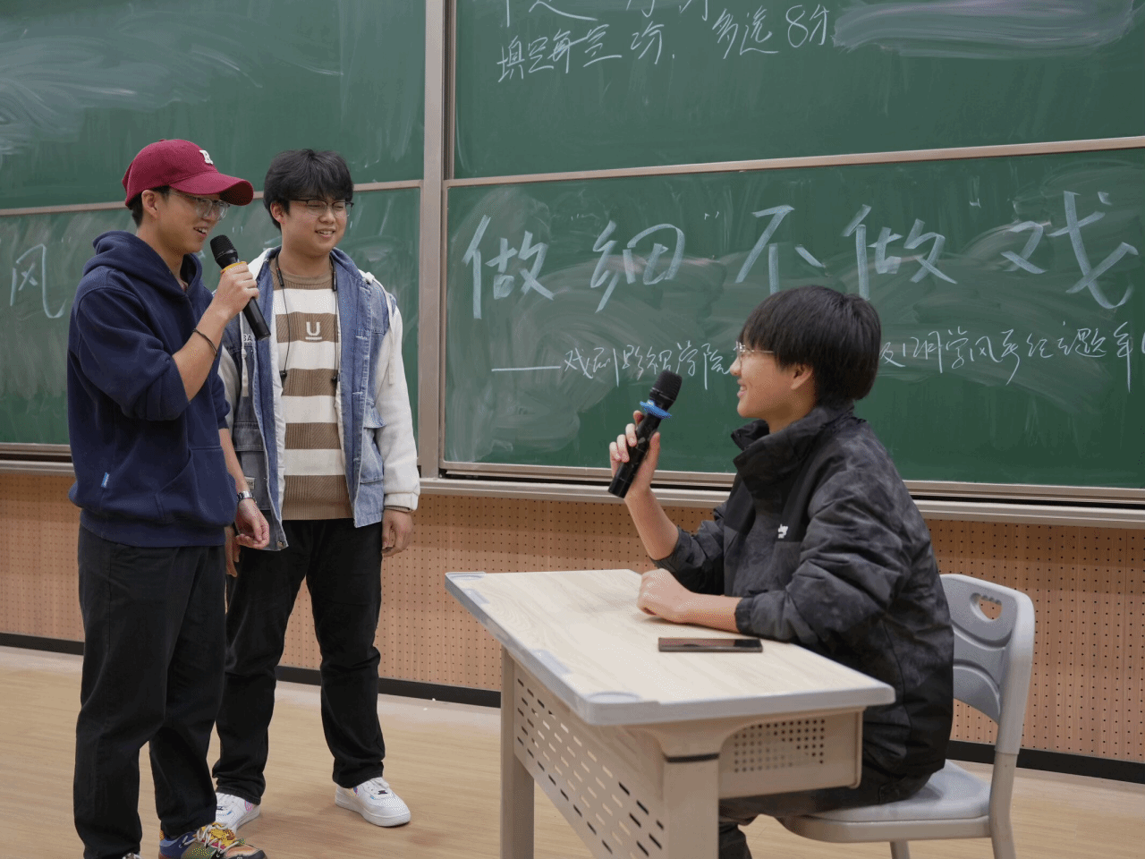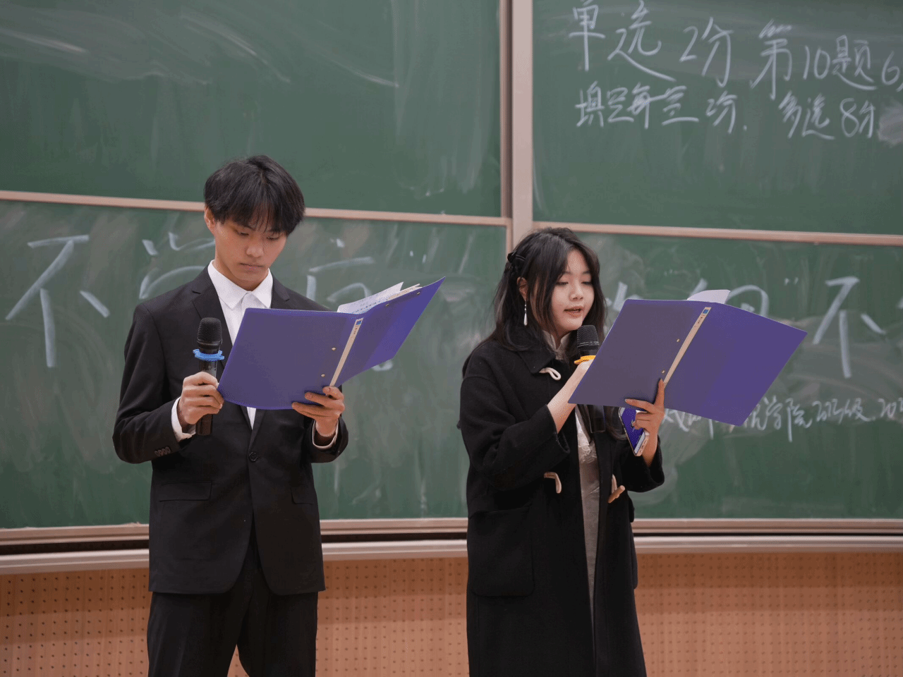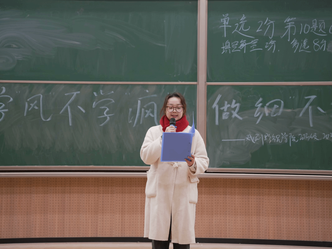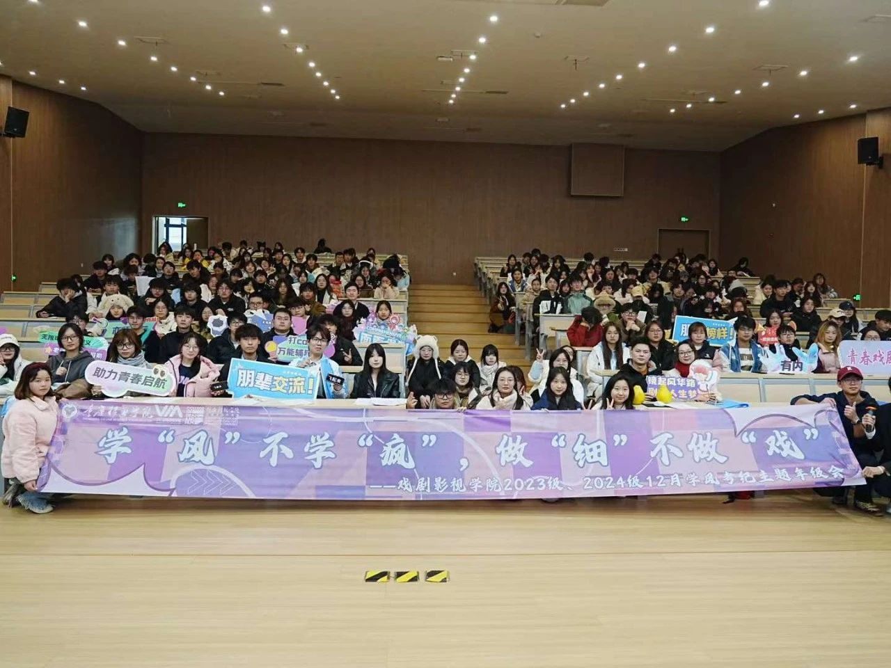 学期末的钟声悄然临近,同学们即将步入充满考验与收获的期末考试周。在这关键时刻,为激发同学们的备考热情,交流学习心得,并加强学风纪律建设。戏剧影视学院2023级、2024级动画、戏剧影视文学专业于2024年12月20日下午14点在贤者楼423报告厅精心筹备了一场以“学‘风’不学‘疯’·做‘细’不做‘戏’”为主题的年级盛会。此次年级会内容丰富,形式多样,包括学生手册知识竞赛、学霸经验交流、创意小品演绎及惊喜抽奖等环节,为师生们献上一场智慧与欢乐交织的视听盛宴。