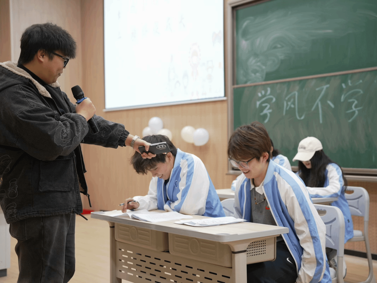 活动伊始,学生们便满怀期待地将自己亲手书写的对期末考试的诚挚心愿悬挂在寓意深远的诚信树上。接着,一场紧张刺激的学生手册知识竞赛拉开了本次年级会的帷幕,试卷中道道与师生们日常学习生活相关的试题,检验了同学们对校规校纪的熟悉程度。短短15分钟的作答时间,让诸多学生急得抓耳挠腮。考试结束后,即时评分并公布成绩,此后老师们针对错题进行深入剖析,不仅加深了对学校规章制度及完满教育理念的理解,还激发了同学们的学习热情。最后评选出前10名荣获寓意“佑你必胜”的柚子奖品,而排名靠后的同学则收获了“辅导员专属VIP指导卡”,帮助学生进一步学习《学生手册》。