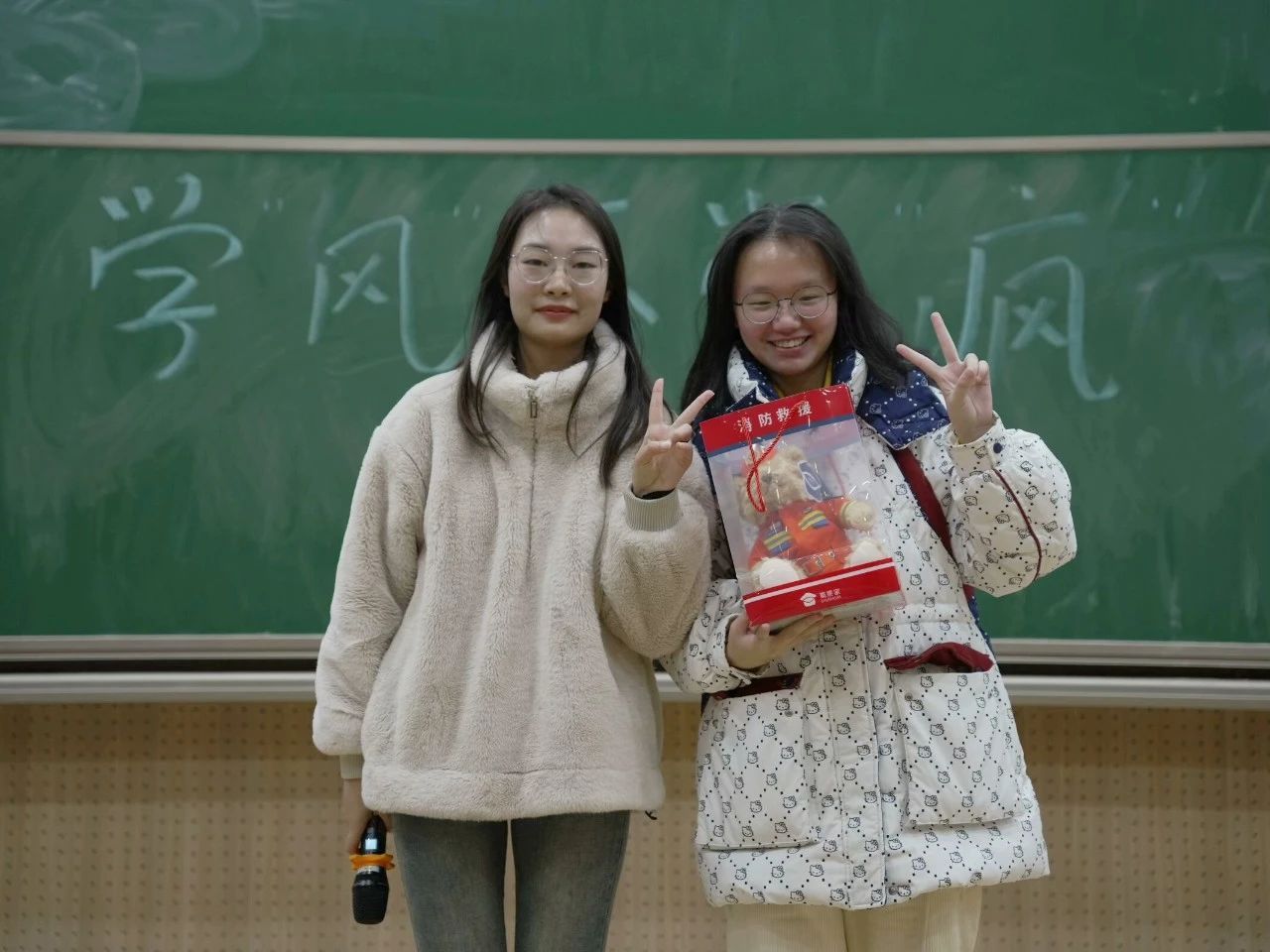 当然,此次年级会作为2024年度最后一次主题年级会,24级戏娃们也将迎来他们第一次大学考试,老师们也为到场的戏娃们准备了一些不一样的惊喜。随着大屏幕缓缓滚动,戏娃们的名字纷纷出现在大屏幕上,当最终停止在某一位戏娃的头像上,戏娃们都忍不住欢呼雀跃。幸运获奖者的脸上都绽放出灿烂而幸福的笑容,这份突如其来的喜悦不仅为他们的心灵带来了一丝慰藉,也为即将迎来的期末考试周平添了几分轻松与美好的期待。