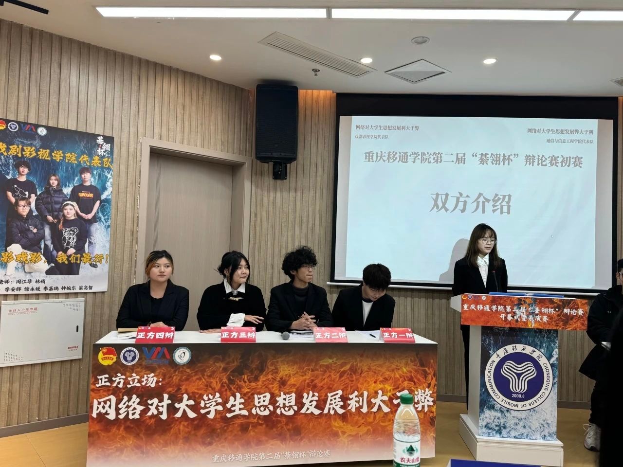 初赛环节,戏剧影视学院对阵通信与信息工程学院,戏剧影视学院辩题是“网络对大学生思想发展利大于弊”。开篇立论便条分缕析地阐述网络为大学生带来的诸多益处。网络上学术资源应有尽有,各类在线课程打破了学习的时空界限,让大学生能接触到顶尖教育资源,极大地拓宽了知识视野。反方通信与信息工程学院指出网络信息良莠不齐,虚假新闻、低俗内容充斥其中,大学生缺乏辨别力,极易被误导,致使价值观扭曲。双方你来我往,精彩绝伦,最终戏剧影视学院成功晋级半决赛。